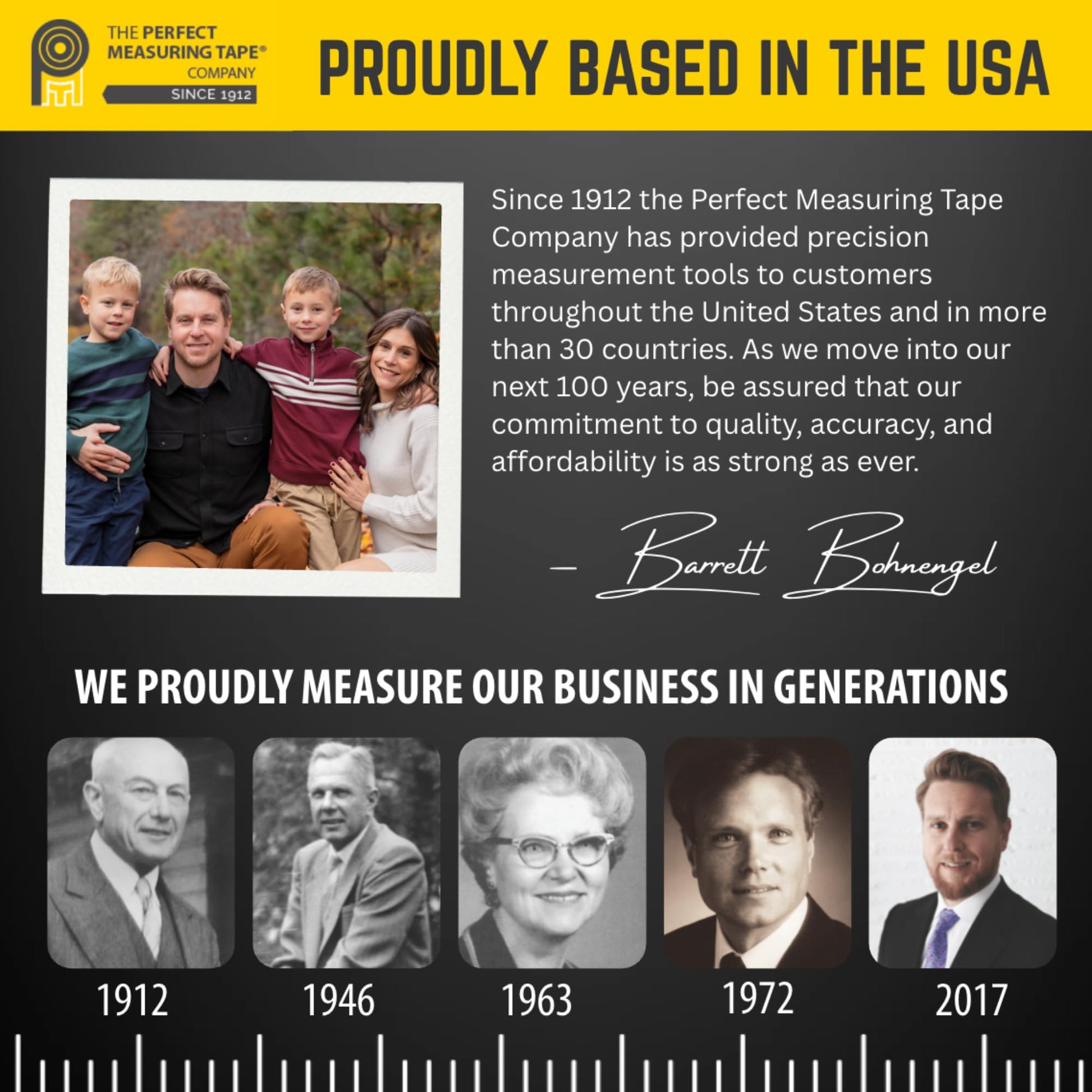 • QUALITY SINCE 1912 - The Perfect Measuring Tape Company Produces and Supplies Quality Linear Measurement Products from Toledo, Ohio for Over 100 Years.
