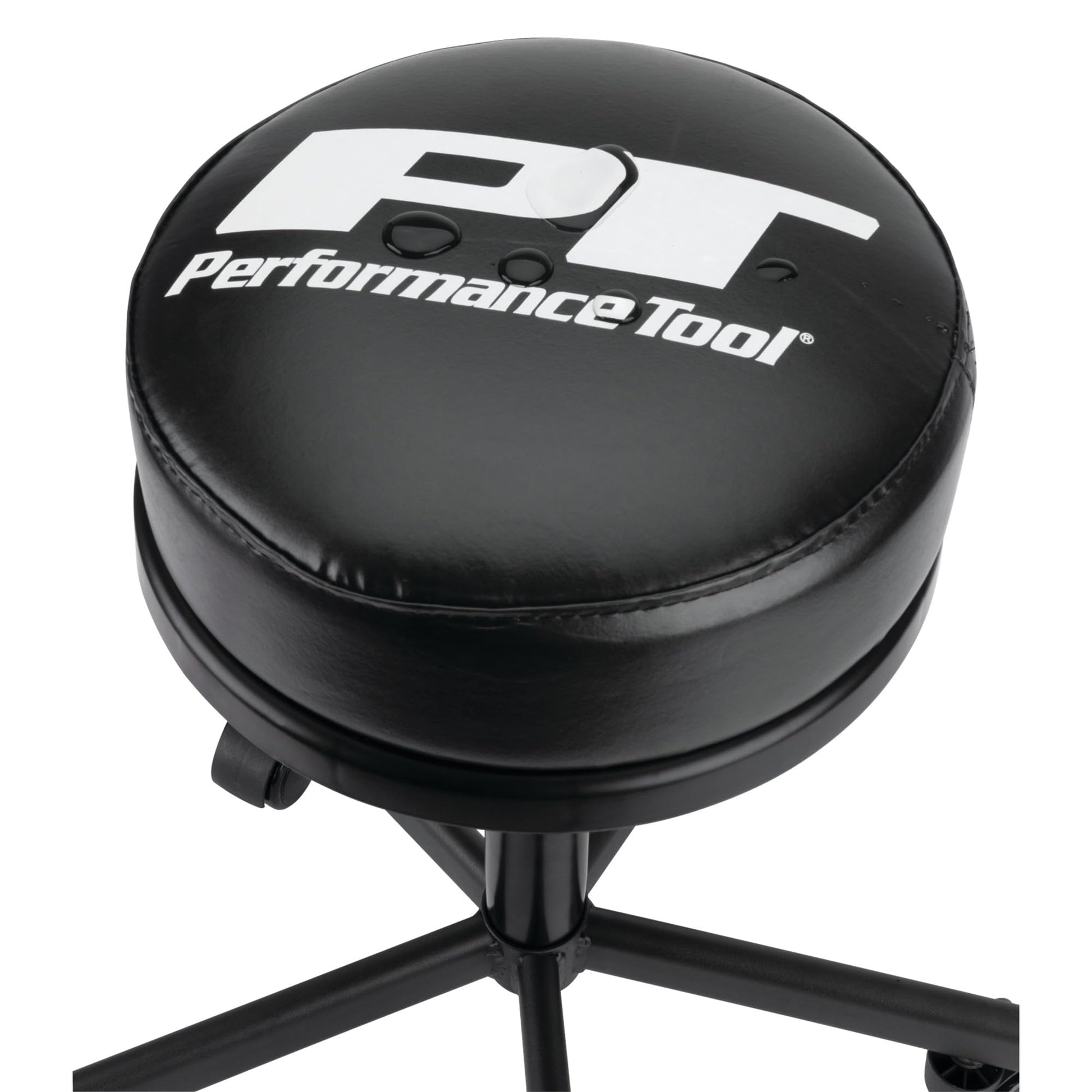 Details: The Performance Tool HEIGHT ADJUSTABLE Pneumatic Mechanic Stool is the perfect addition to any garage or workshop. With its quick and easy height adjustment, you can customize the stool to fit your needs, ranging from 19 to 24-Inches (480 to 610mm). The stool's extra-wide 5-point frame and footrest provide the stability and support you need while working on tough jobs, while the durable crinkle finish ensures long-lasting use. The stool's mobility is unmatched, with five hooded dual-caster swivel wheels that make it easy to move around and access tools. For added comfort during extended periods of use, the stool features an extra-thick 12.5-Inch (318mm) diameter foam padded seat. And with a weight capacity of 300lbs (136 Kg), you can rely on this stool to handle even the toughest jobs in mechanic garages and workshops.