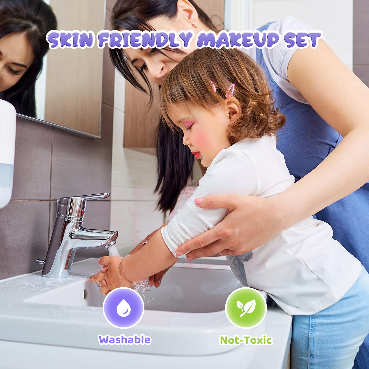 • ใ€๐–๐š๐ฌ๐ก๐š๐›๐ฅ๐ž & ๐๐จ๐ง-๐“๐จ๐ฑ๐ข๐œใ€‘The play makeup set is made of material that meets US toy safety standards(CPC, CPSIA, ASTM certificates). We promise to be non-toxic, lead, cadmium, phthalates free and skin-friendly. The child can smell the fruity scent when opening it, and it can be easily washed off with soapy water.