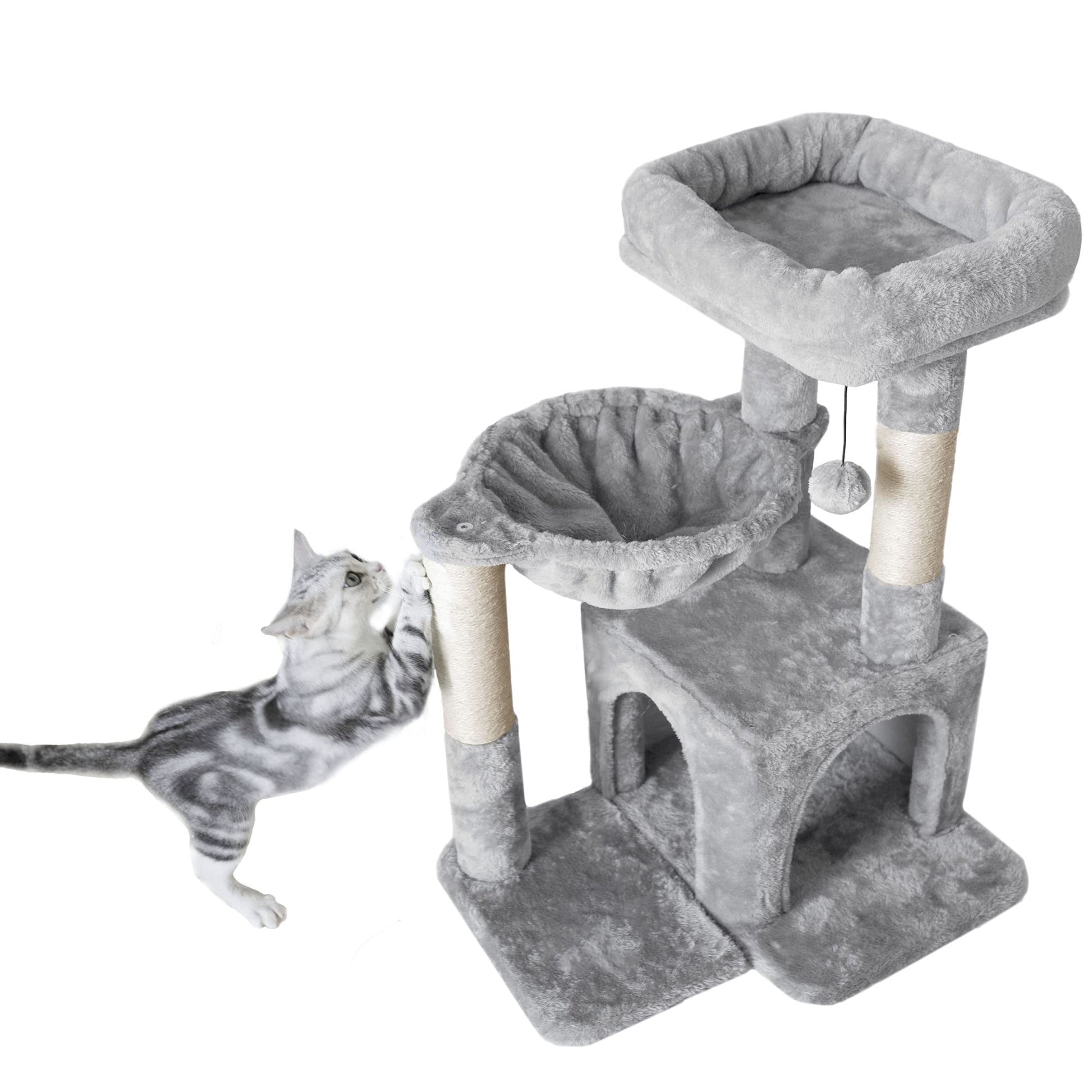 Pesofer Cat Tree, Small Cat Tower with Sisal Scratching Post and Hammock Light Gray