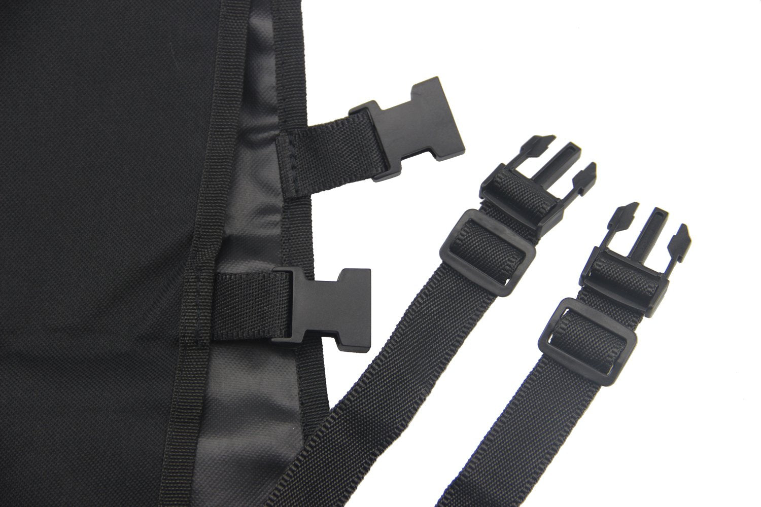 3.EASY TO INSTALL - It will take you just a few seconds to install this dog trunk cover by quick lock two adjustable strap buckles loop around headrest or secure to trunk rear parcel shelf by four velcro stickers hold the unit and place.