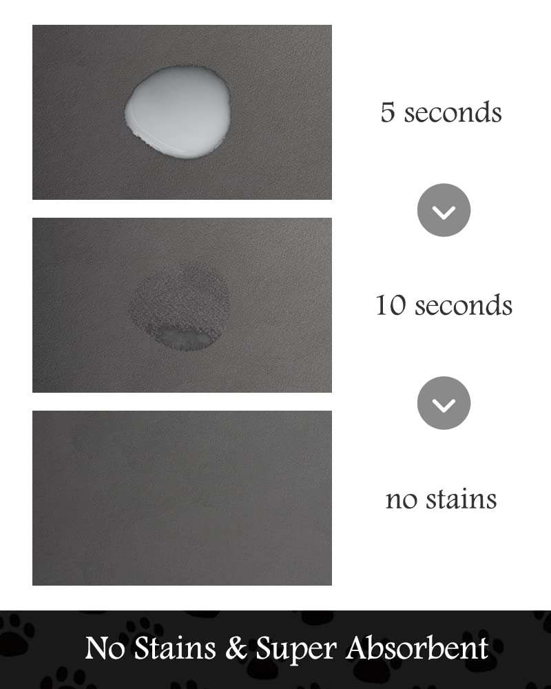 • Super Absorbent & Durable: Perfect pet supplies.This pet food mat can prevent liquid from overflowing. Super absorbent and quick-drying ability to avoid wetting pet paws even for messy drinkers. Sturdy dog & cat food bowl mat cannot be torn easily and avoid eating by mistake. Keep the pet's eating environment tidy and clean.