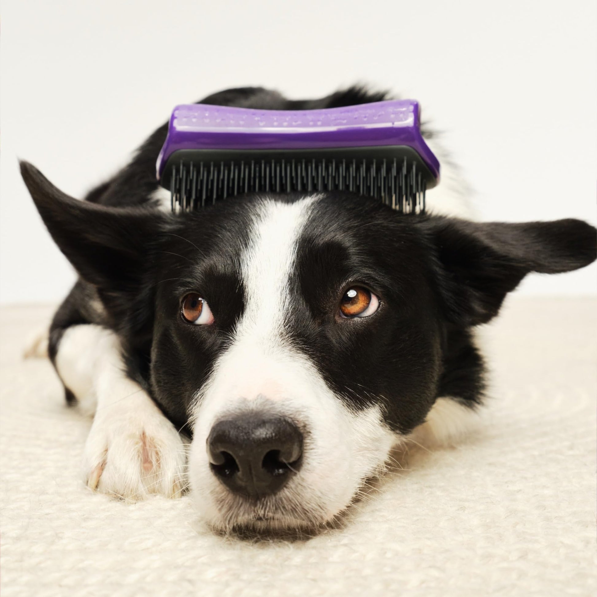 • This brush is ideal for de-shedding double-coated dogs. Using patented two-tier teeth technology, the longer teeth gently remove dirt, reaching down to the undercoat, shorter teeth pick up loose hair.