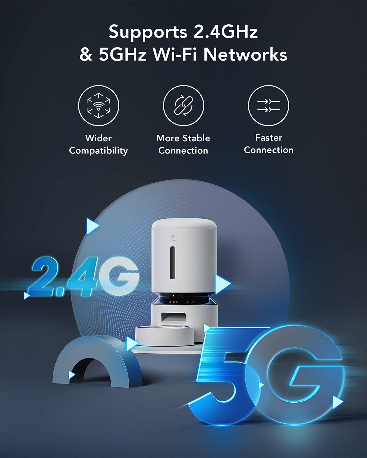 • Smart APP Control: PETLIBRO automatic cat feeder is 5GHz and 2.4GHz WiFi-enabled, allowing you to program and monitor your pet's meals anywhere anytime through the PETLIBRO App for iOS and Android phones. You can set a feeding plan, and schedule feeding time, up to 10 meals per day with 1-50 portions per meal. Check the feeding logs to rest assured your pet gets fed on the set schedule. The feeder can be controlled from multiple family members' smartphones.Operating Temperature: 0°C-55°C / 32°F-131°F..Operating temperature: 0°C - 55°C/32°F-131°F