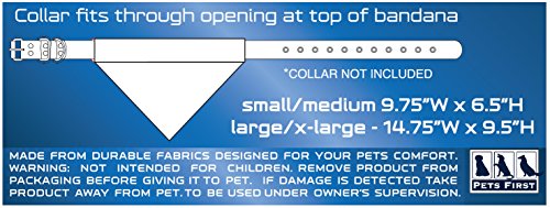 Details: Your pet will surely be able to show off his/her team spirit with this unique dual sided NFL Pet Bandana! It features a screen printed team logo and name on 1 side & an embroidered team logo on the other side! Officially licensed and ready for game day! Comfortable 100% poly-cotton keeps it wrinkle free and easy to clean. Great for parties, BBQs, tailgating and even Halloween as a pet costume. Sizing & USE: Two available sizes will fit most dogs, including small dogs, medium dogs and large dogs. Please measure your dog before ordering to ensure you get the right fit and avoid any need for a return or exchange. Best fit if used with our matching NFL DOG COLLAR! Teams - Available teams include: Arizona Cardinals, Atlanta Falcons, Baltimore Ravens, Buffalo Bills, Carolina Panthers, Chicago Bears, Cincinnati Bengals, Cleveland Browns, Dallas Cowboys, Denver Broncos, Detroit Lions, Green Bay Packers, Houston Texans, Indianapolis Colts, Jacksonville Jaguars, Kansas City Chiefs, Los Angeles Rams, Miami Dolphins, Minnesota Vikings, New England Patriots, New Orleans Saints, New York Giants, New York Jets, Oakland Raiders, Philadelphia Eagles, Pittsburgh Steelers, San Diego Chargers, San Francisco 49ers, Seattle Seahawks, Tampa Bay Buccaneers, Tennessee Titans, and Washington Redskins. Choose your team and click ADD to cart now! ≫>> Pets First company has established itself as the largest sports-licensed pet product company in the country. - Pets First has gained its reputation in providing every pet owner with premium licensed pet products; from unique and colorful apparel items to fun and playful toys and accessories. - Working with the latest technology, our creative designers choose from the highest quality materials to provide durable, unique and innovative pet merchandise. Our factories follow the highest standards of safety guidelines to ensure your pets’ security, while providing a long lasting product.