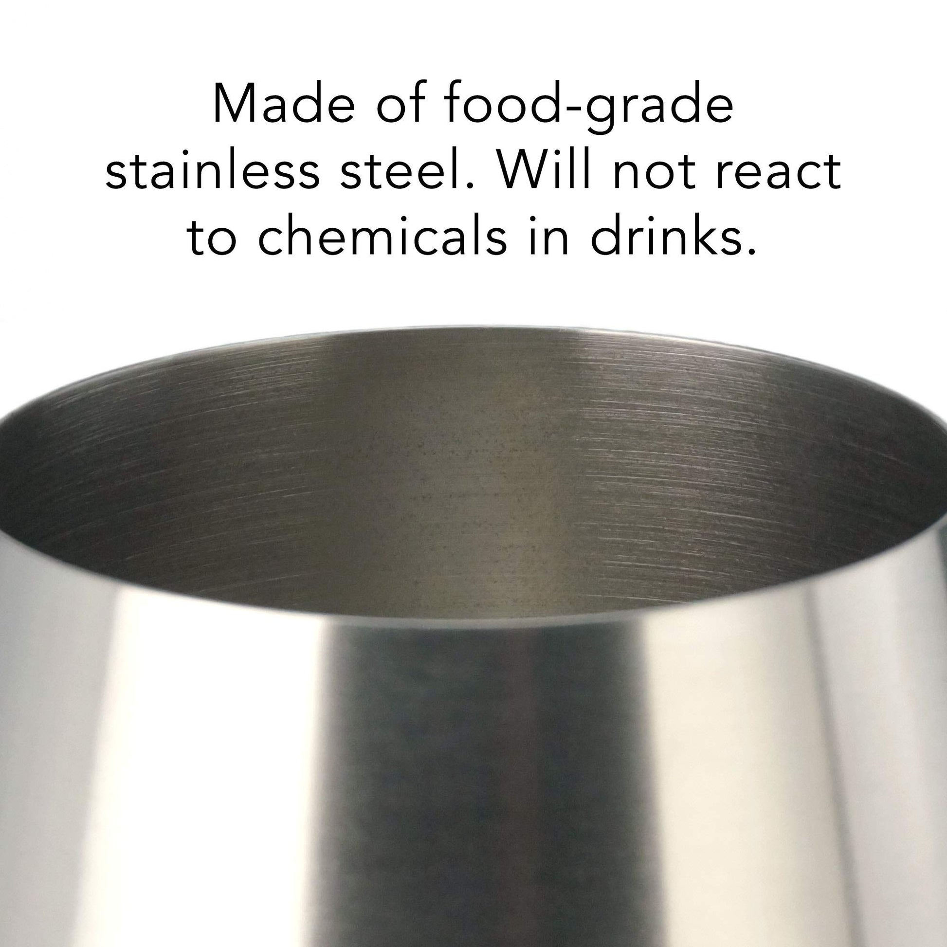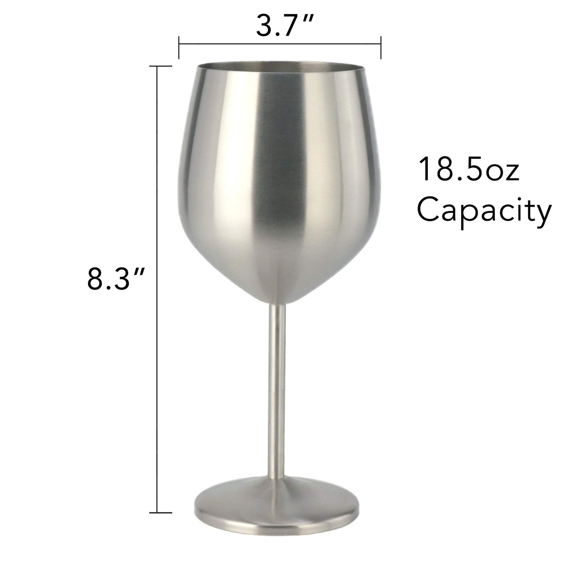 • ๐Ÿ‡ Elegant Satin Finish: Our stainless steel wine glasses boast a sophisticated satin finish, offering an elegant touch to your dining experience. Perfect for a variety of beverages, each glass holds up to 18.5 ounces, blending functionality with style.