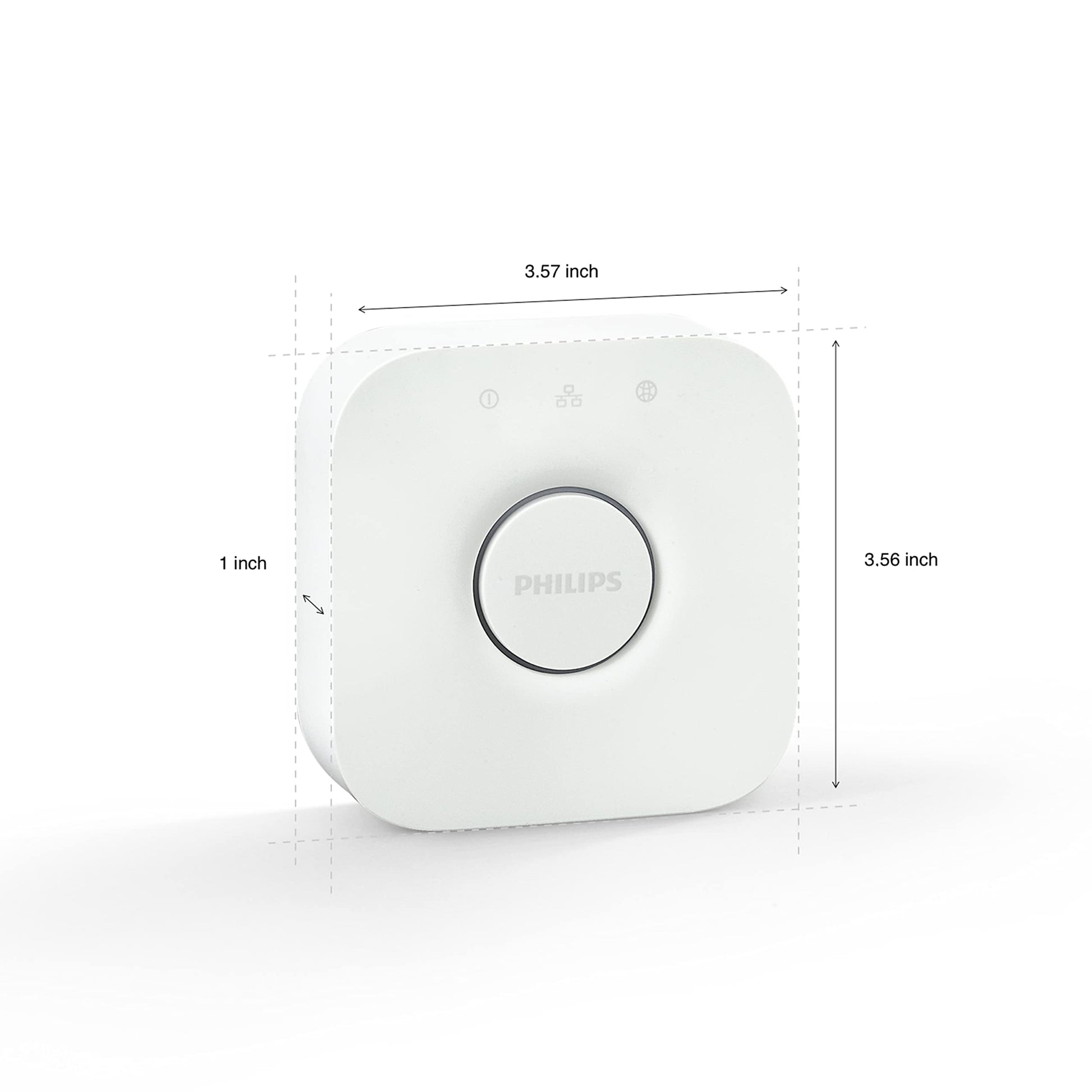 Details: Unlock the full potential of your Philips Hue system! The Hue Bridge unlocks the full suite of smart lighting features. Control lights while away set automations, or connect with other smart platforms and devices like Matter and Samsung SmartThings. Set up is simple: Connect it to power and your router. Then set it up in the Philips Hue app where it gets updated automatically. Set it and forget it. The Bridge remembers your settings even when your power goes out, and is always up to date. Enjoy a secure and reliable connection that won't strain your Wi-Fi. The Bridge uses trusted technology such as Zigbee -- a mesh network that allows your lights to work even when the Wi-Fi is down. Response time is instant so you can control your lights without any delays. Get the most out of your Hue system. The Bridge unlocks the most unique features of Hue. Sync your lights to experience surround lighting. Add outdoor lights to your Hue system. Or feel safer with light that welcomes you at the door -- or makes it look like you're home when you're away. Want more advanced light control? The Bridge makes it possible to control your lights from anywhere, even away from home. Set recurring automations. Create and save custom scenes. Or use voice control. Connect your Hue lights with other smart home platforms using Matter. With the Bridge, you can do so much more with smart lighting. Upgrade your Philips Hue system with a Bridge.
