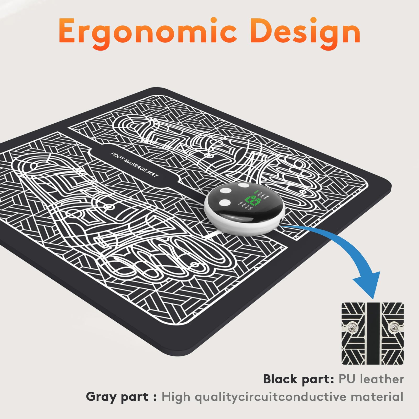 • 【Convenient to Carry】The device is convenient to carry and is suitable for personal healthcare. 2-in-1EMS Foot Massager and body massage pad. The massage pad features a waterproof PU leather surface and a rubber bottom, combining durability and slip resistance. The body massage pad can be used on other body parts – from shoulders to calves – either in conjunction with the foot pad or on its own.