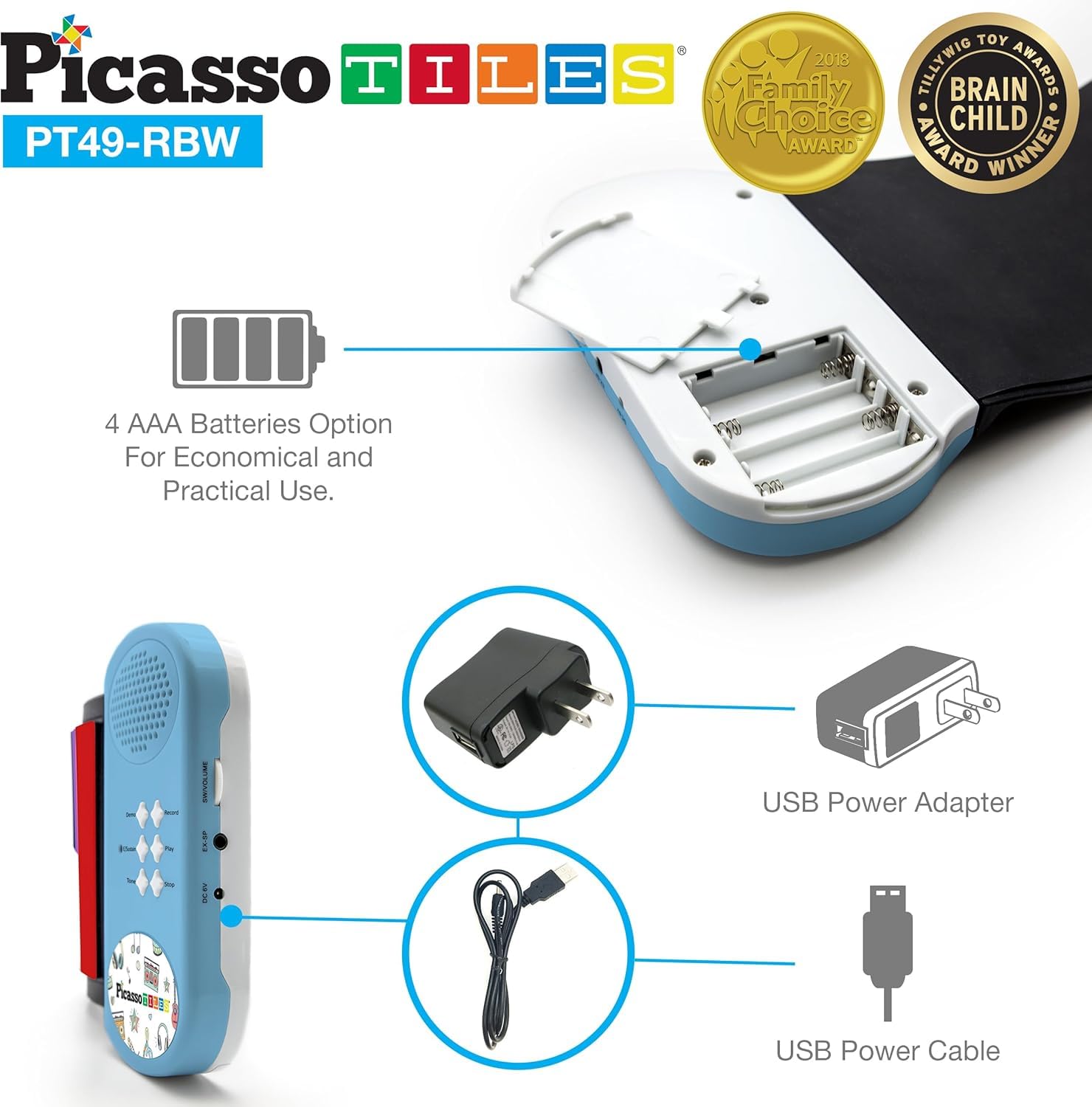 PicassoTiles® PT49 Kid's 49-Key Flexible Roll-Up Educational Electronic Digital Music Piano Keyboard w/Recording Feature, 8 Different Tones, 6 Educational Demo Songs & Build-in Speaker - Rainbow