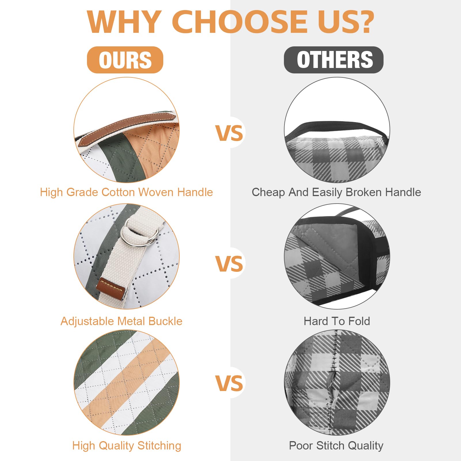 DURABLE & COMfORTABLE WITH 3-LAYERS - Our large picnic blanket consists of a three-layer structure. The surface polyester upgrade is easy to clean and scratch resistant, saving time for your cleaning. Durable and can be used for a long time. The middle is made of acupuncture cotton padded, which is soft and comfortable to sit on. You can enjoy the picnic time to the fullest.