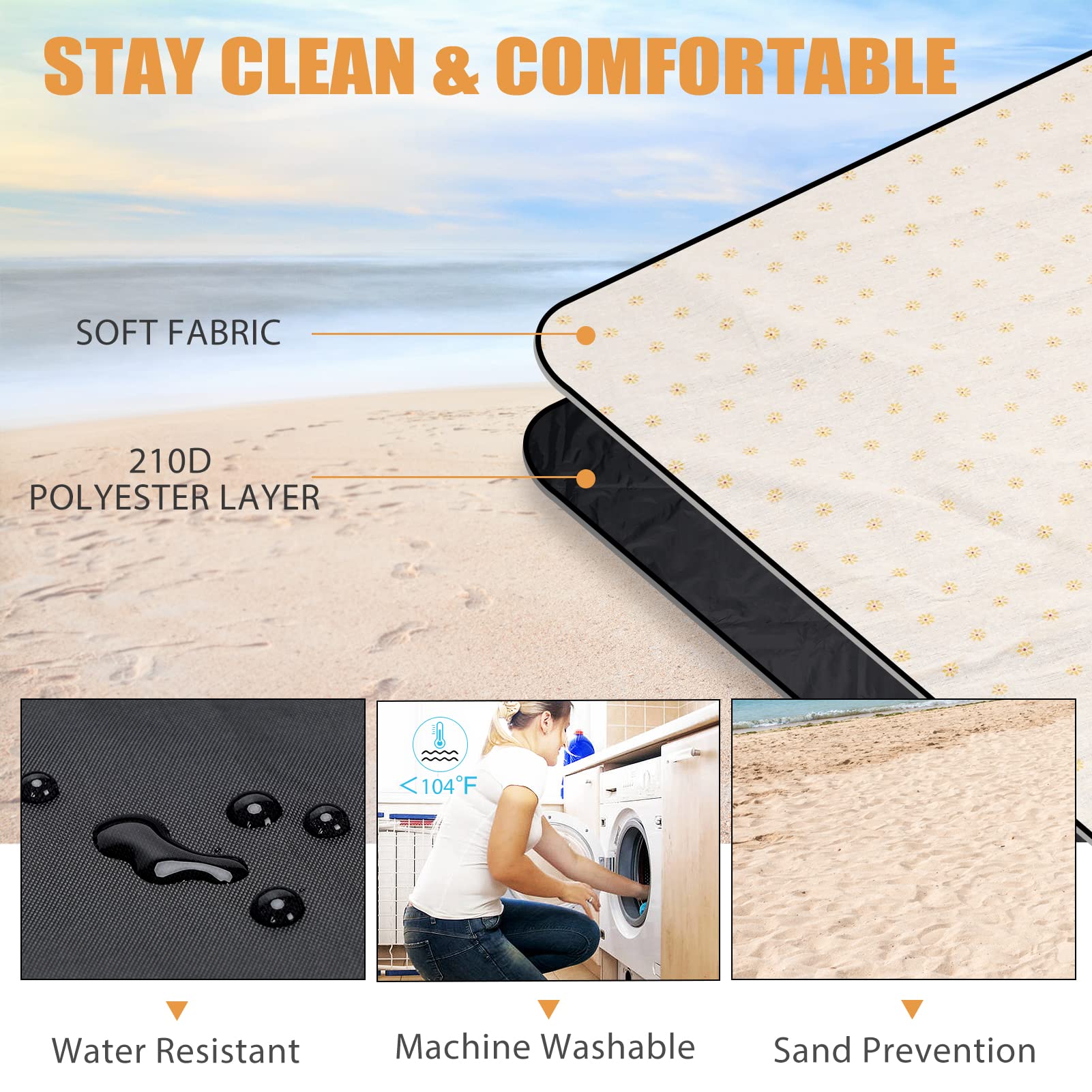 Picnic Outdoor Blankets Waterproof Large - Beach Mat Sand Free Foldable with Carry Strap | Portable Camping Blanket | Park Blanket for Grass Park, Hiking, Travel, Concerts, Indoor (Yellow Flower)