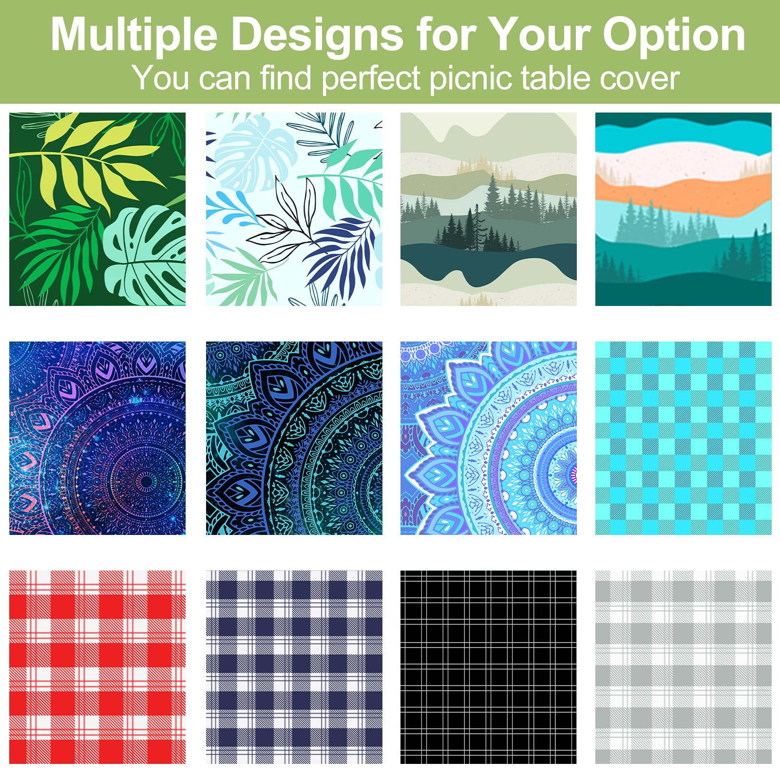• BEAUTIFUL PATTERNS: Our picnic table cover set feature in unique patterns, which are detailed and not easy to fade, perfect for home party, birthday party, anniversary celebration and other special occasions, ideal gift for camping and hiking lovers.