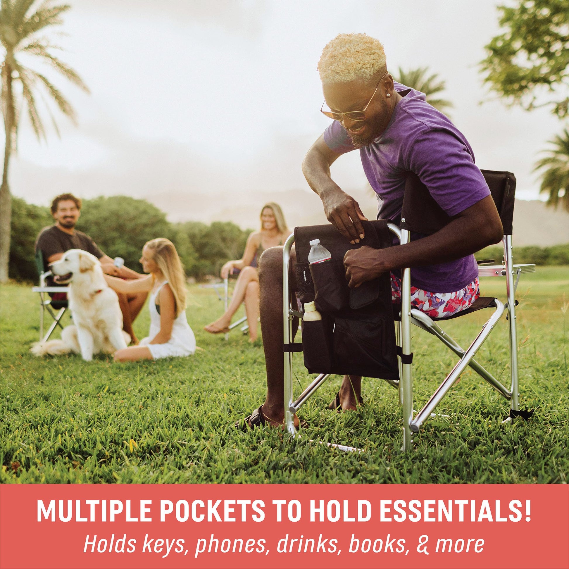 PICNIC TIME Sports Chair with Side Table, Outdoor Foldable Padded Adult Camping Chairs with Cup and Accessory Panel for Lawn, Beach, & Sports Use for Adults, up to 300-lbs Capacity, (Red)