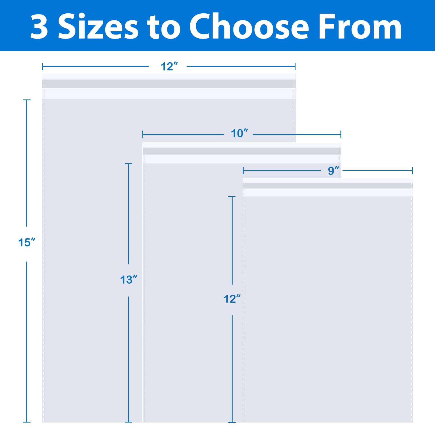• CLEAR CELLOPHANE BAGS - You'll receive 100 pieces of 9'x 12' self-adhesive clear cello bags.