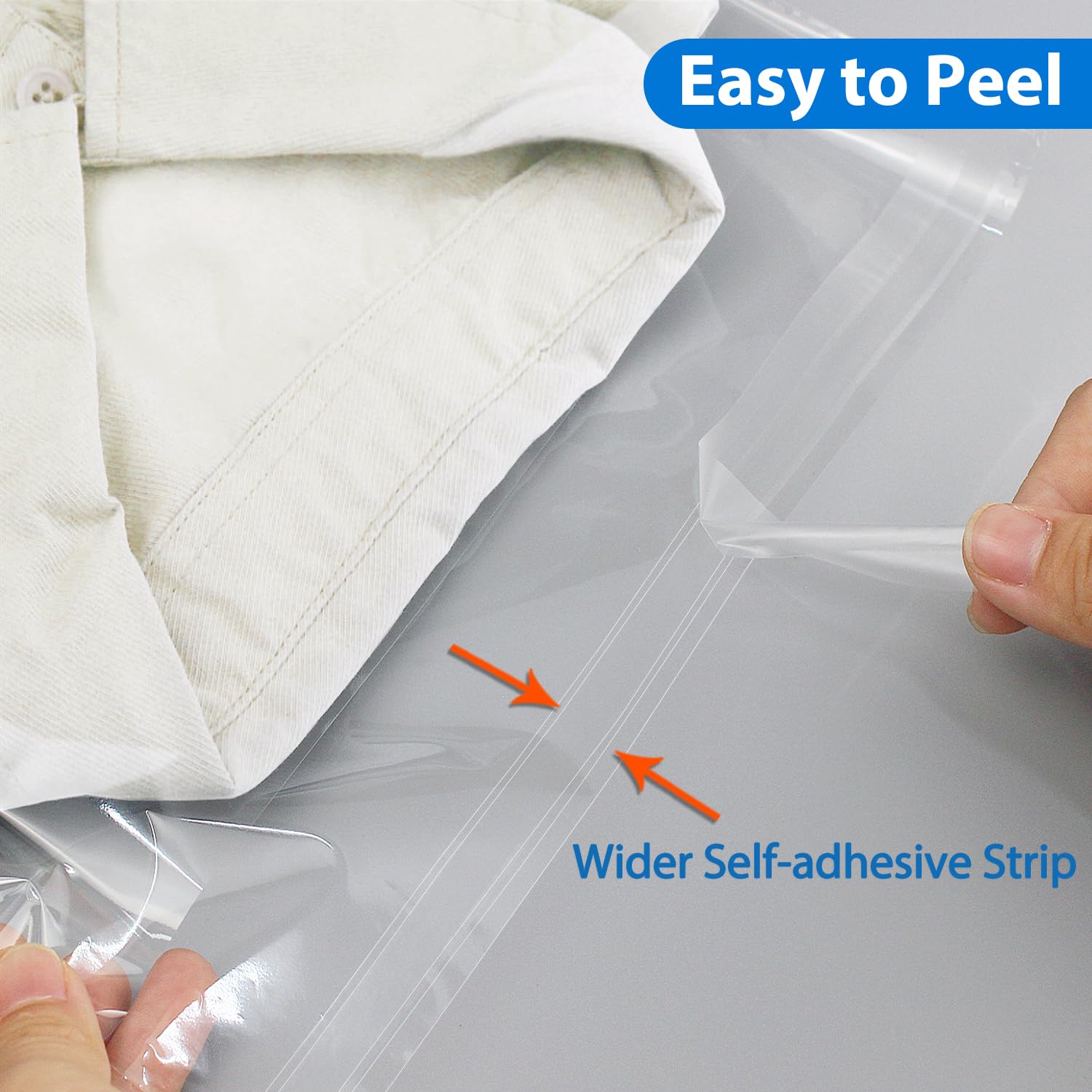 • PROFESSIONAL PACKAGING SOLUTIONS - These clear clothing bags are ideal for retail, small businesses, storage, and packaging requirements. They're perfect for packaging t-shirts, shirts, scarves, and pants, etc. giving them a professional touch.