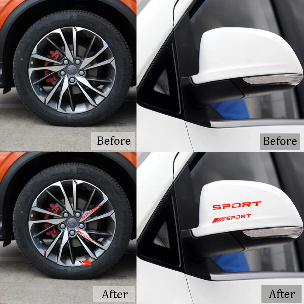 • ✔【Fit for All Car】(LxW size) wheel reflective sticker's size: 2.36"x2.36"; Sports sticker's size: 5.1"x0.3", Striped sports sticker's size: 3.9"x0.27". One size for all car/suv/truck/vans,etc.