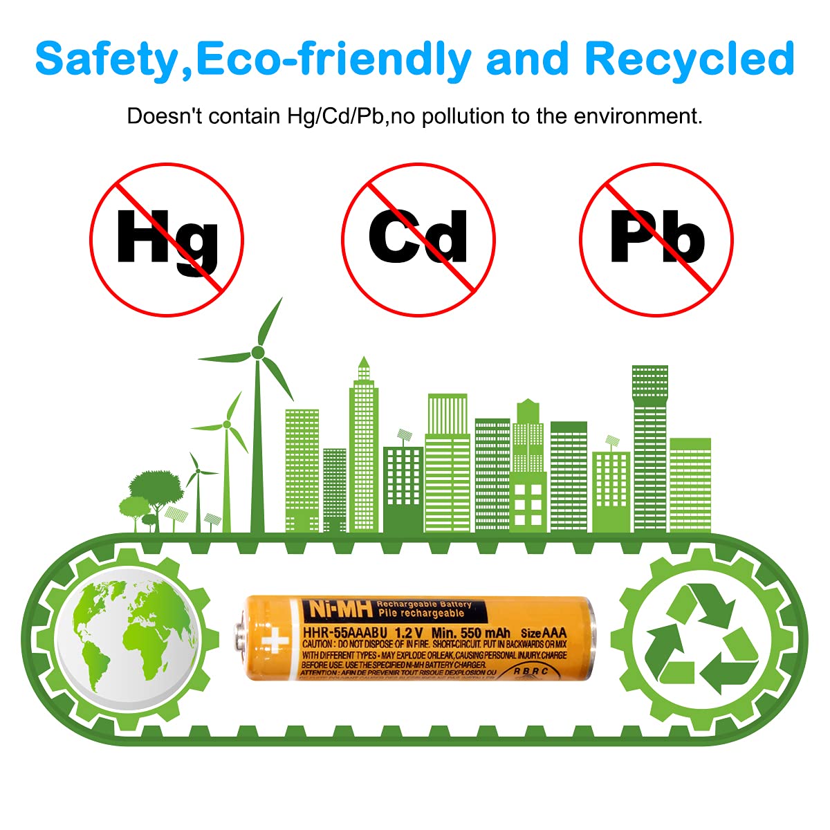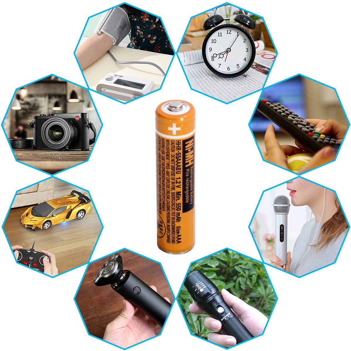 pingju NI-MH AAA Rechargeable Battery 1.2V 550mah 4-Pack hhr-55aaabu AAA Batteries for Panasonic Cordless Phones, Remote Controls, Electronics