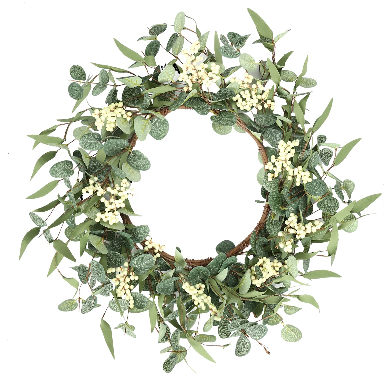 Pinkpum 20'' Eucalyptus Wreath for Front Door, Porch, Window - Green Decor for Home, Farmhouse - Spring, Summer, Fall, All Seasons