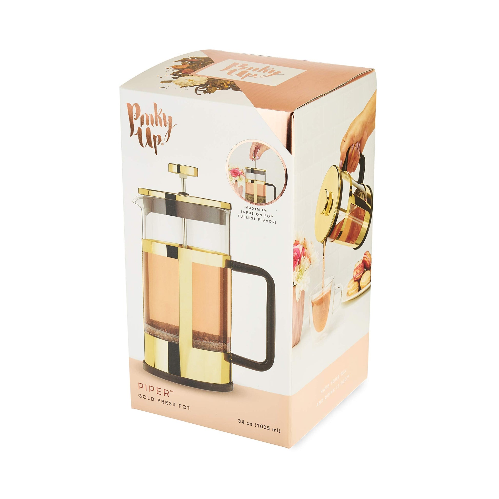 Pinky Up Piper Stainless Steel French Press Coffee Maker, Borosilicate Glass Tea Press for Loose Tea, Stylish, Durable & Easy to Clean, Sleek Design, Coffee Bar Accessories, 34 oz, Gold