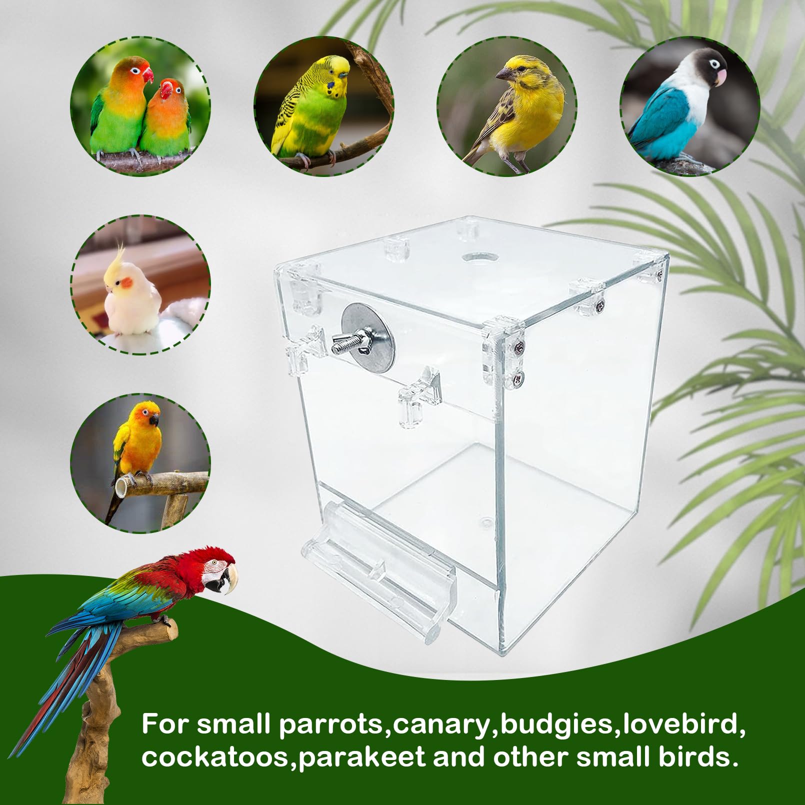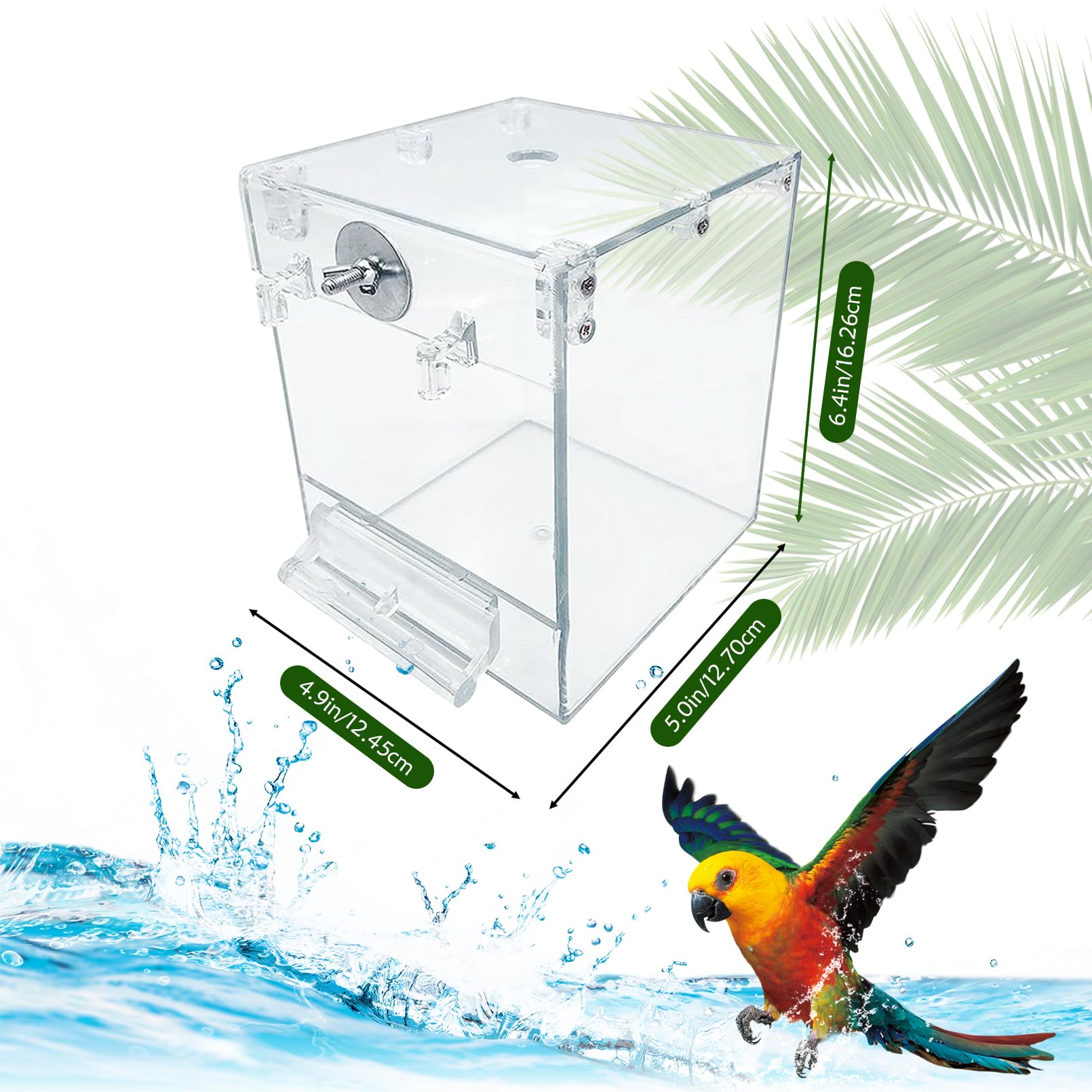 • High Quality Material:Parrot bath box is made of thickened acrylic material,which is thick,non-leakage,easy to clean,environmentally friendly and safe,non-toxic,light and strong, long lasting. purpose of using transparent materials is to observe the state of the bird at all time, allowing you to have a good view to view your pet,Provide birds with a warm and comfortable bathing environment