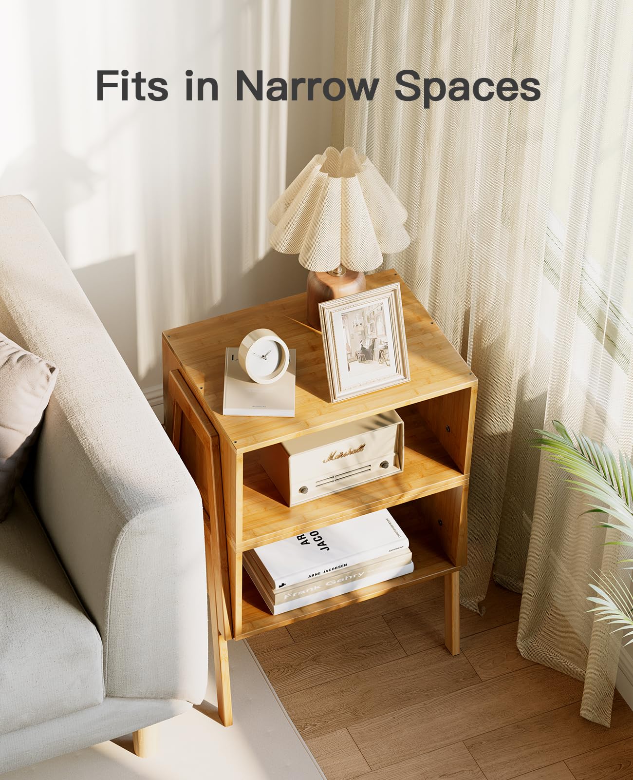 Pipishell Bamboo Stackable End Tables, Wood Living Room Nightstand, Bedside Tables for Bedroom Storage, Set of 2