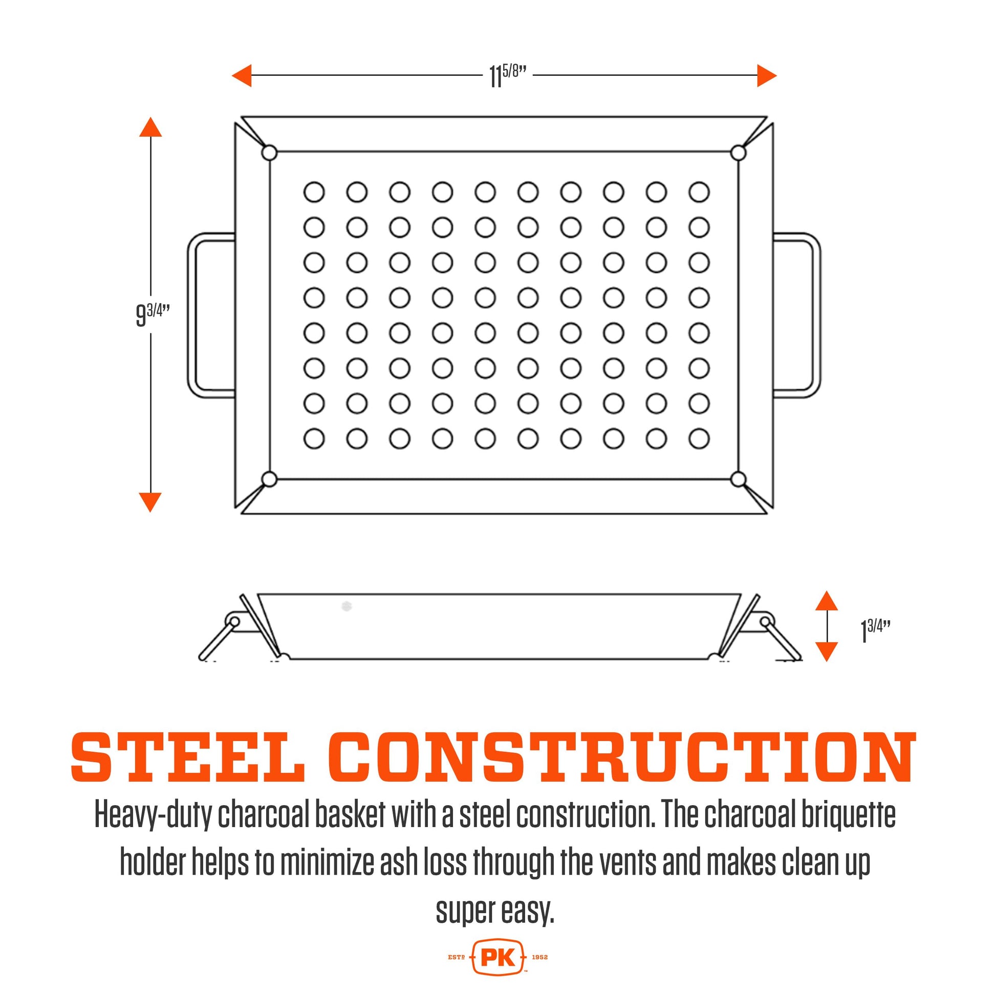 Details: The heavy duty charcoal tray from PK is built tough just like your PK grill and smoker. These PK grill accessories bbq grill baskets are the perfect compliment to your Original PK. The PK grill charcoal basket fit perfectly in the lower chamber of your barbecue grill and have wide holes for good airflow.
