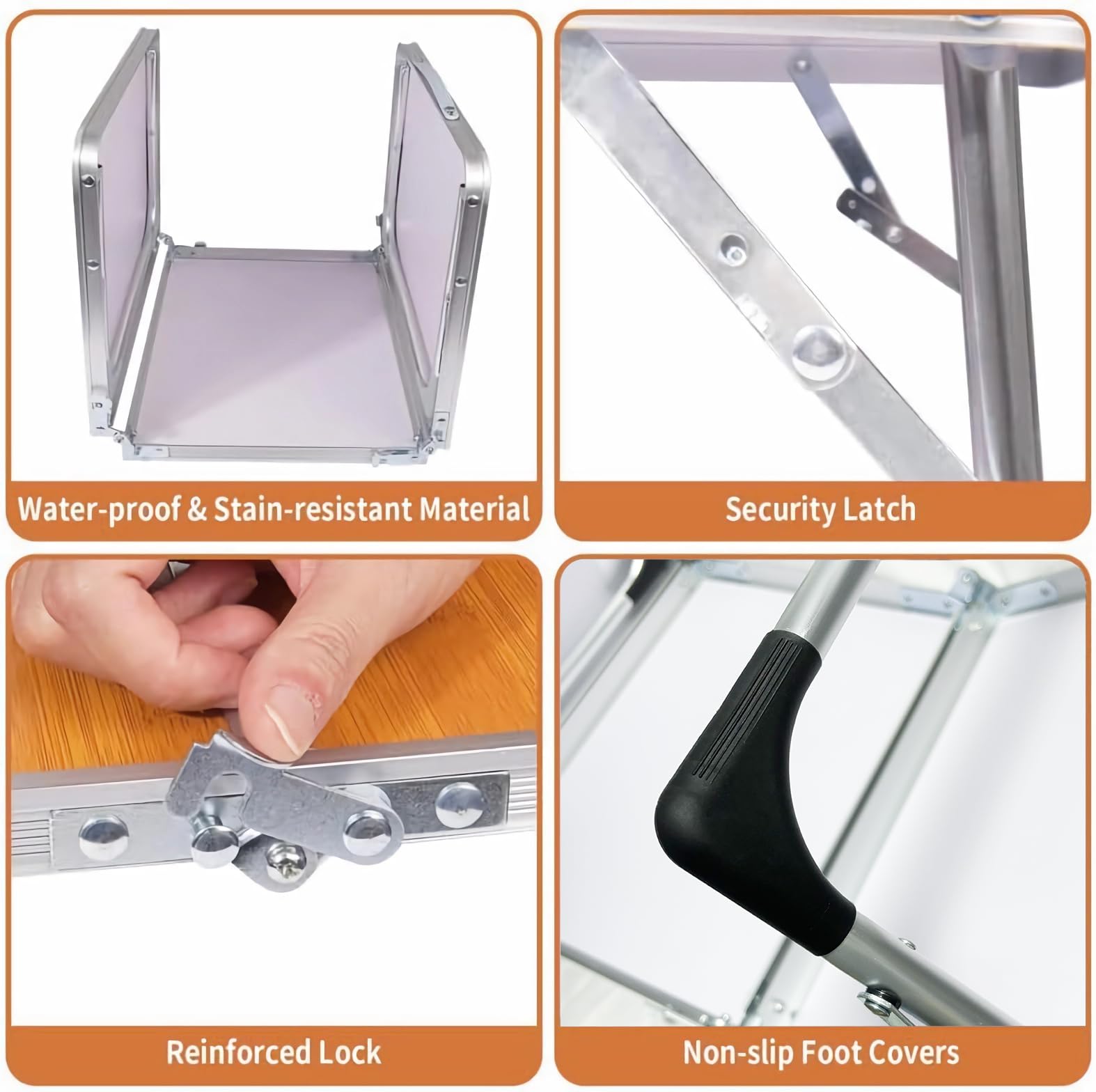 • 【Lightweight Yet Incredibly Stable】- Gone are the days that you have to bring heavy and big tables when you go camping.This dinner table is finished with thicker MDF table top and sturdy aluminum alloy frame. It's also designed with additional non-slip U-shaped side supports and strong latches, which ensures the folding picnic table stable in use. Tested to hold 40 lbs (evenly distributed).