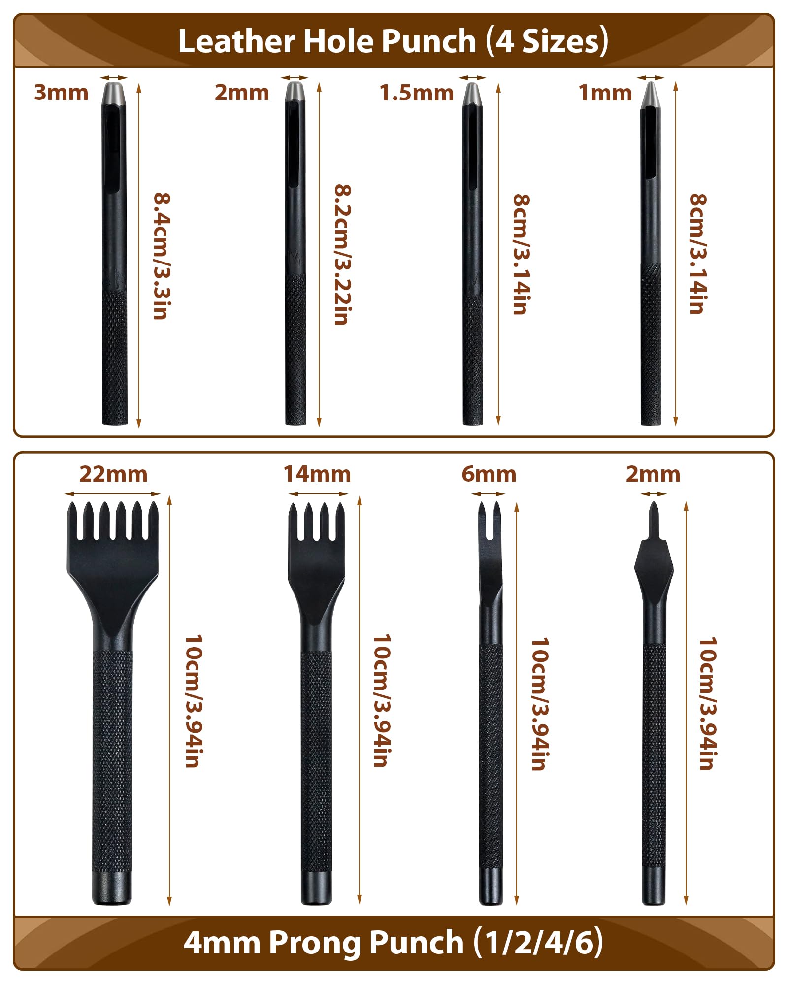 • 【High Quality & Durable】- PLANTIONAL leather working tools set features stitching awls, finger cots, and other accessories that make sewing leather easier and protect your fingers. Made from steel and wood, these tools are sturdy and long-lasting. The handle has a non-slip texture with an elegant appearance, and the stainless steel material is rust-resistant, smooth, and free of burrs.