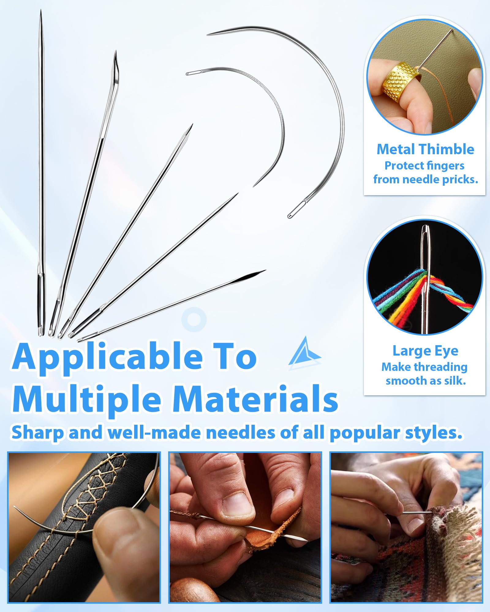 • 【Various Sewing Leather Needles】- Our leather sewing kit features needles of various sizes and shapes, including blunt needles, pointed needles, triangular pointed needles, and curved needles. These needles are strong and sharp, designed to handle tough leather materials.