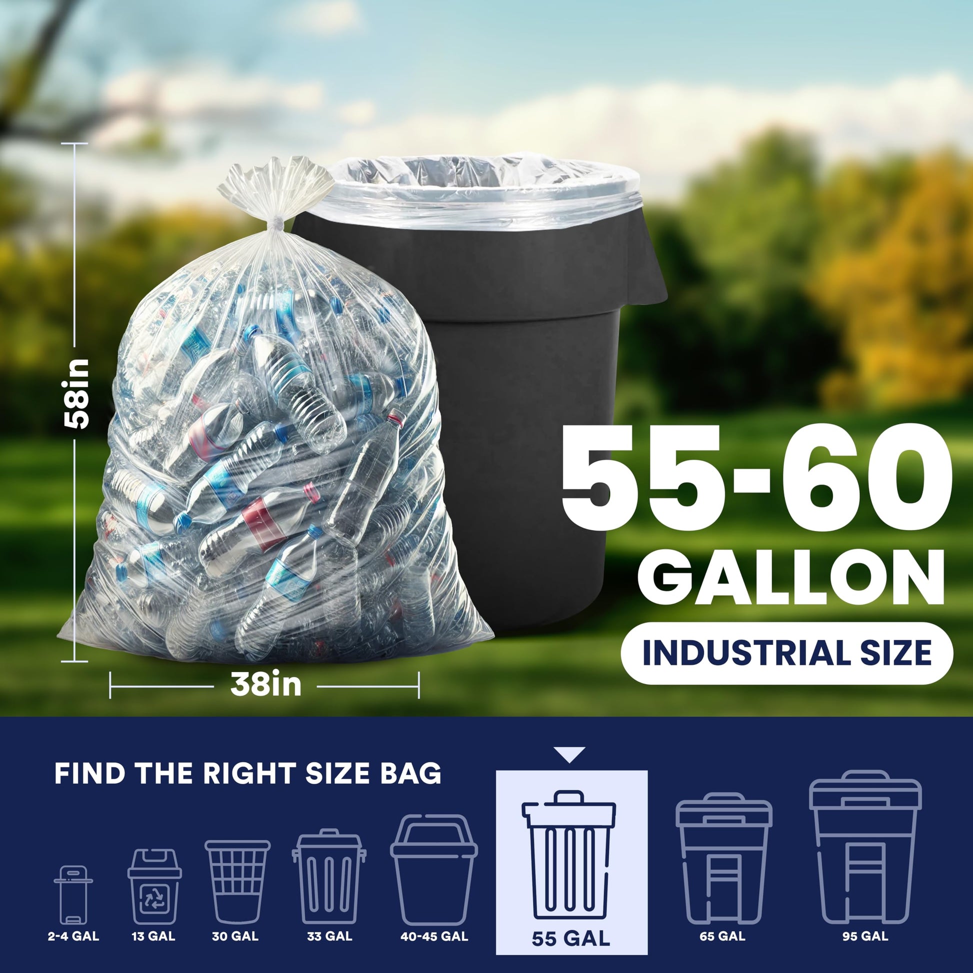 Plasticplace Contractor Trash Bags 55-60 Gallon, Heavy Duty Garbage Bags, 3.0 Mil Clear Trash Bags, Tear-Resistant Large Trash Can Liners for Construction, Recycling & Home Improvement (50 Count)