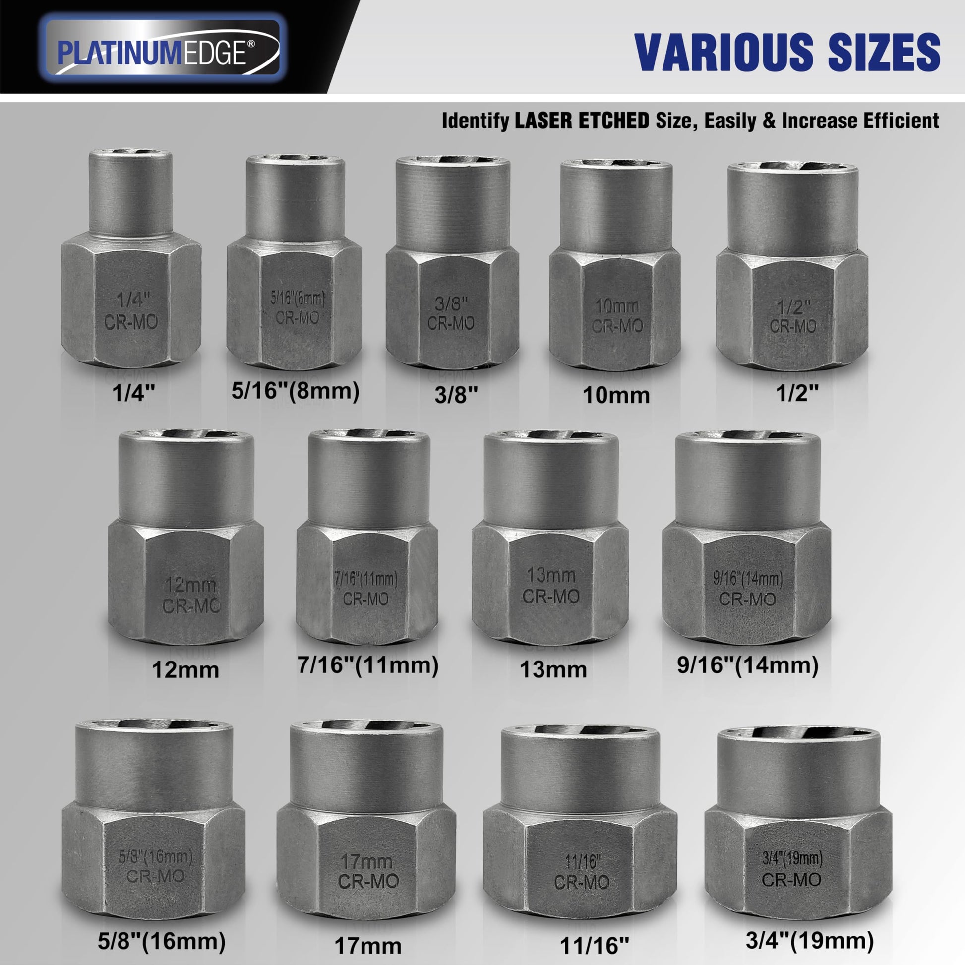 PLATINUMEDGE 13 Pieces Impact Bolt & Nut Remover Set, Stripped Bolt Extractor Set, Cr-Mo Extraction Tool Set with Solid Storage Case, Easy Out Rusted Rounded Damaged Nuts and Bolts