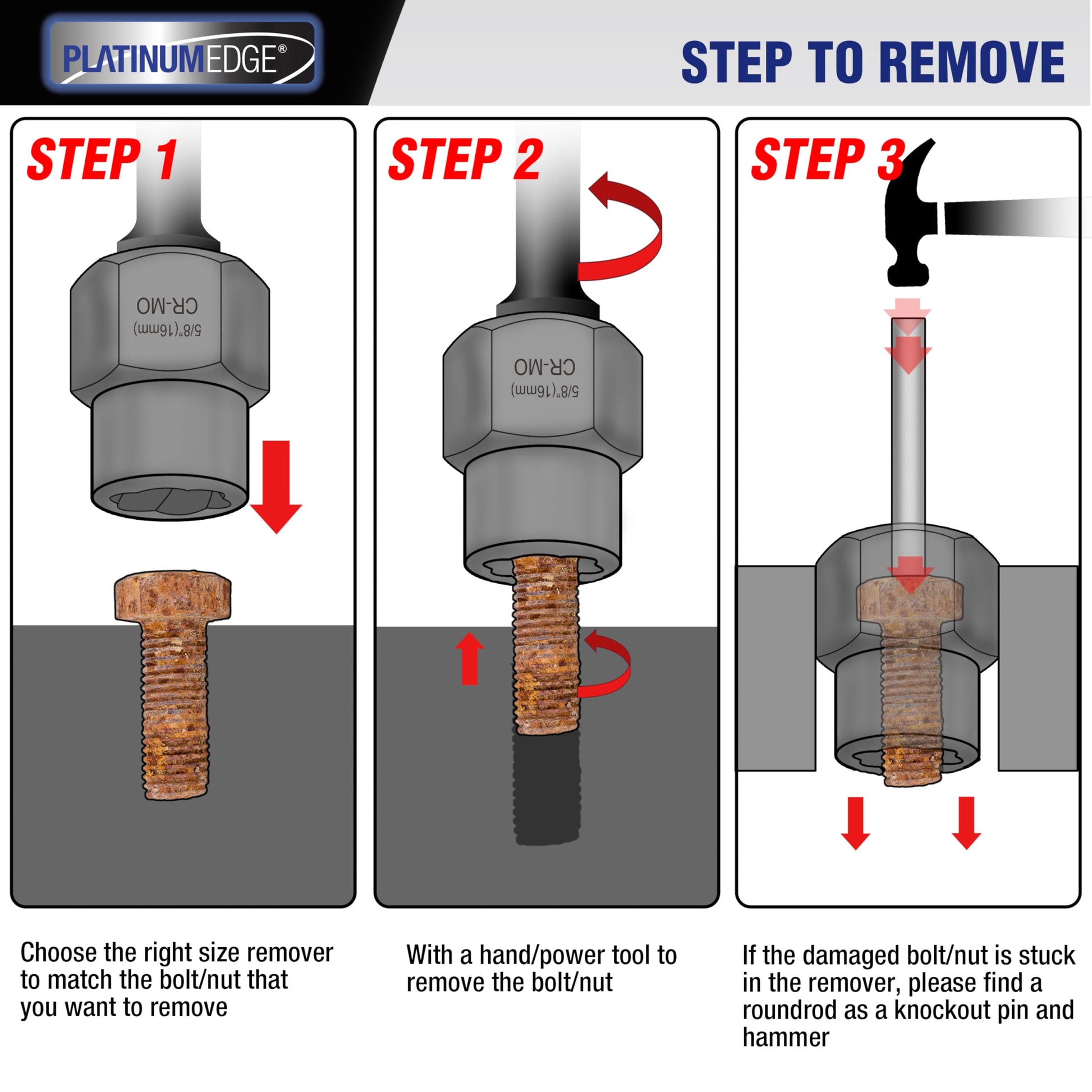 • Premium and Durable: Made of CR-MO steel with hard performance ensures durability and meets your needs to remove stripped, rounded, rusted, damaged nuts, bolts