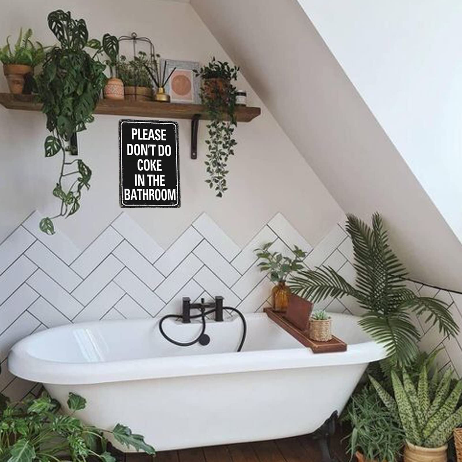 • WIDE RANGE OF APPLICATIOM: These funny metal tin signs are not really rusty.(Please Don'T Do Coke In The Bathroom Sign) It is a fun and attractive decoration for your House, Home, Room, Restroom,Toilet, Bathroom, college dorm or Garage.