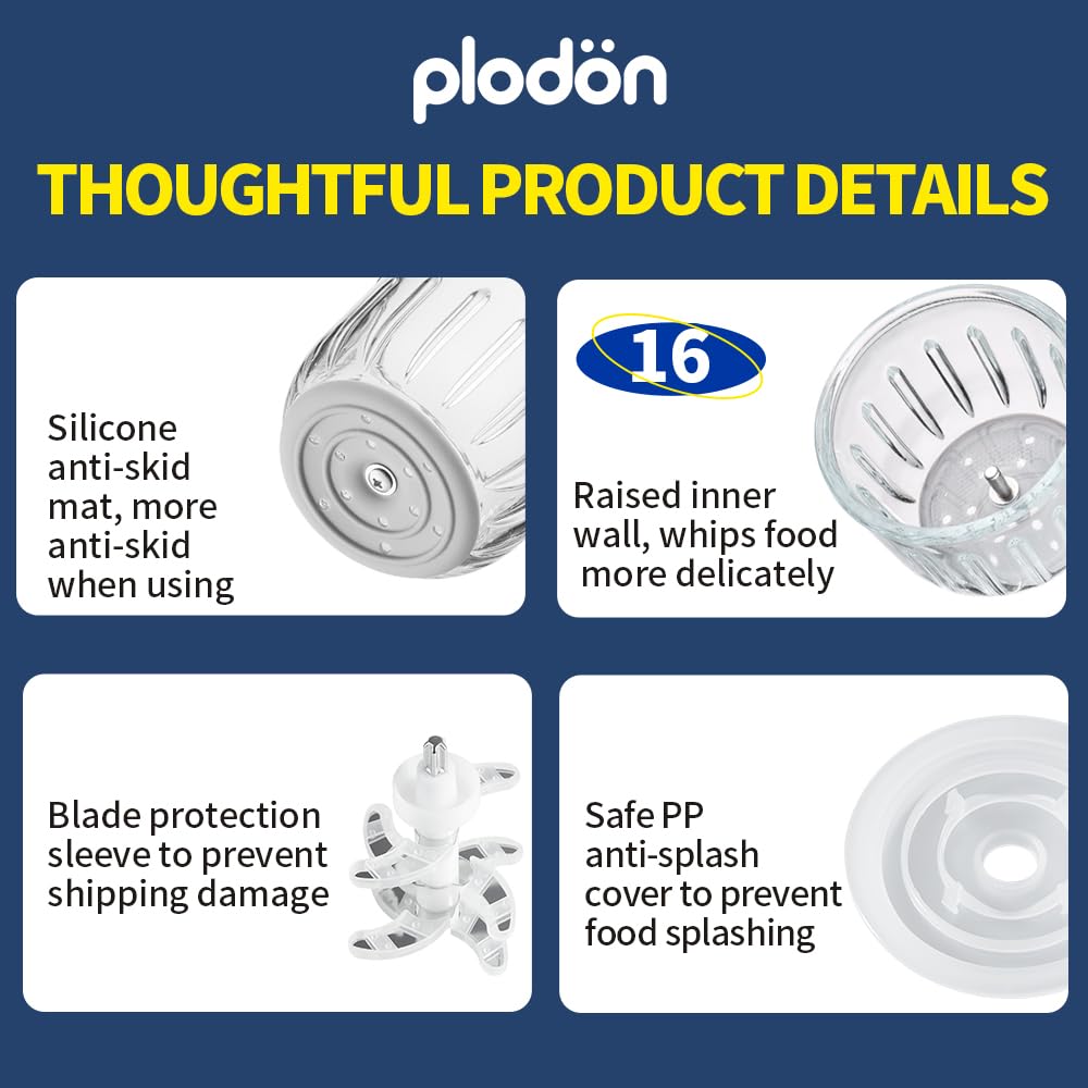• Baby Food Blender-- Made of BPA free material and borosilicate glass, food grade stainless steel, safe for food contact. 300ml cup capacity, moderate and no waste