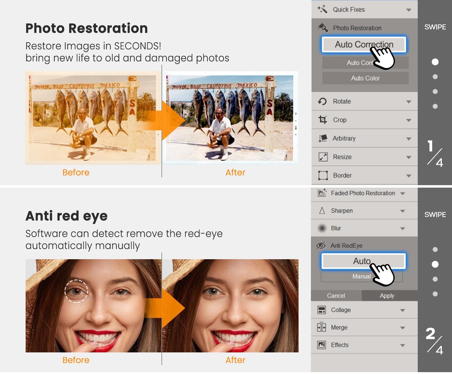 • Powerful Image Enhancement functions included. Quickly enhance and restore old faded images with a click of the mouse.
