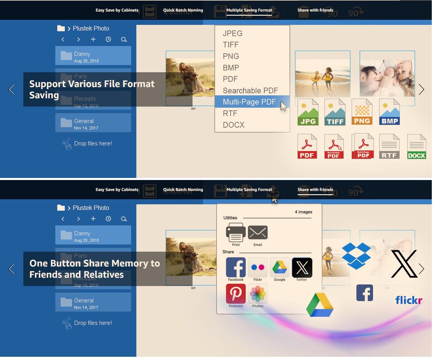 • Fast and easy, 2 seconds for one 4x6 photo and 5 seconds for one 8x10 size photo@300dpi. You can easily convert about 1000 photos to digitize files in one afternoon and share with your family or friends.