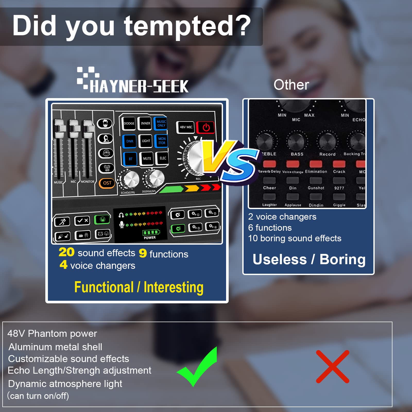 • Full of Features & Personalization : The podcast equipment bundle has 4 sound changing buttons and 16 built-in special sound effects that play different sounds with short taps and long presses. There are also 4 buttons for customizing sound effects, which you can use to record your own voice or favorite music. Not only can it monitor in real time, but it can also be used as a gift for friends who like music or live streaming