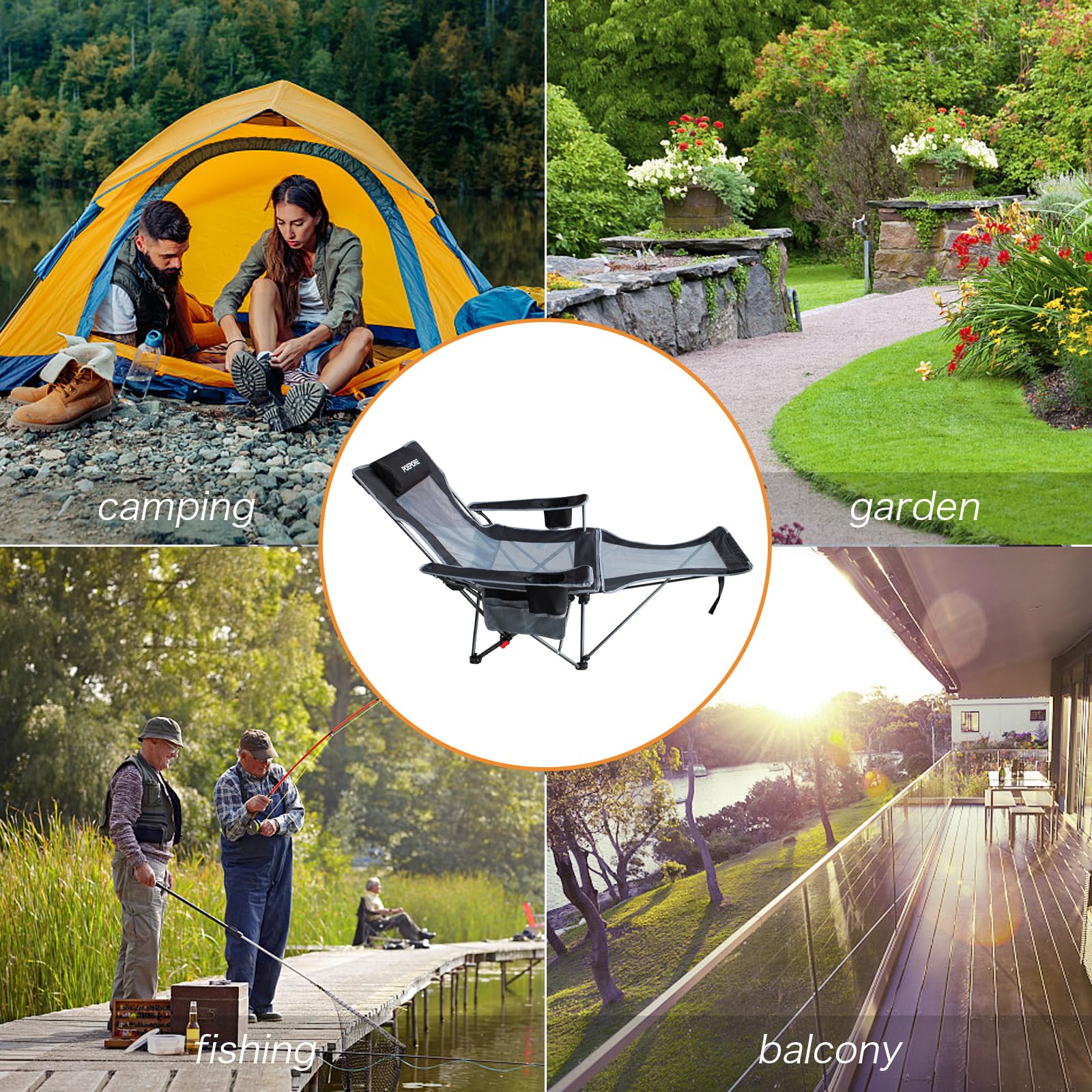 • Multi-purpose: The camping chair is designed to be attractive and practical, and can meet the needs of a variety of outdoor activities such as beaches, gardens, picnics, road trips, fishing, and even as an office or garden nap chair