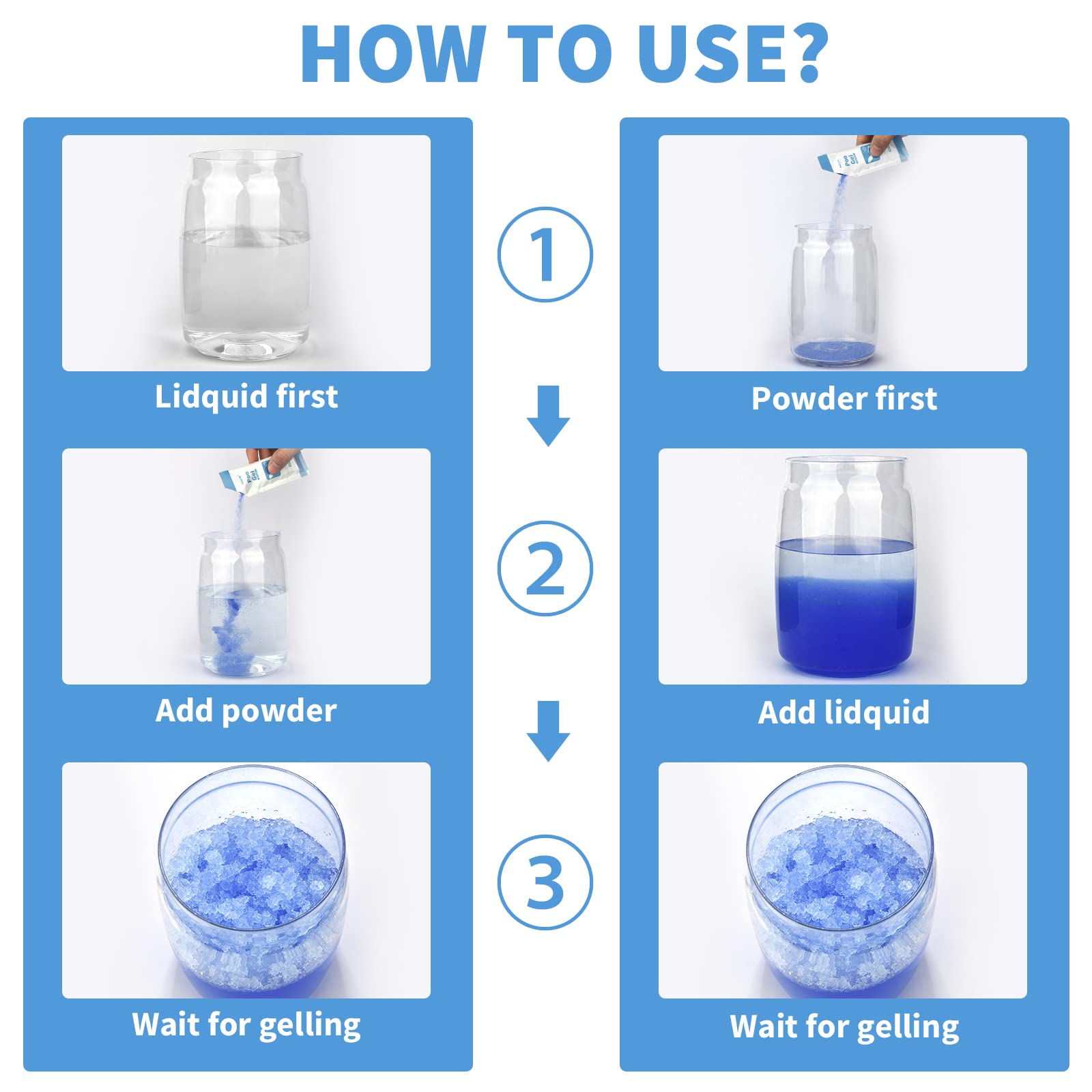 • How to Use - Open the liquid waste gel and then sprinkle the graininess into liquid (Notice: There are 2 methods to use the powder,liquid first or powder first. Both of them can work well). After use, wait for 1-2 minutes to solidify liquid waste