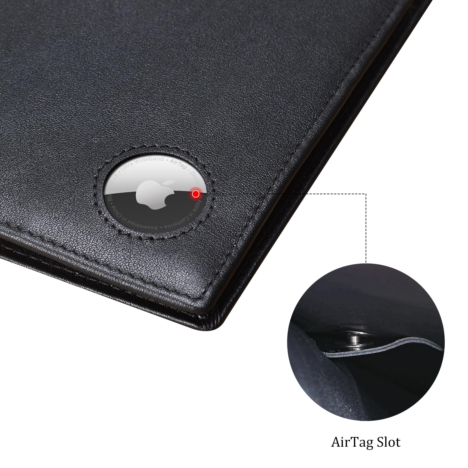 Polare Luxury RFID Blocking Leather Passport Holder Travel Wallet For Men and Women (Black with AirTag Slot)