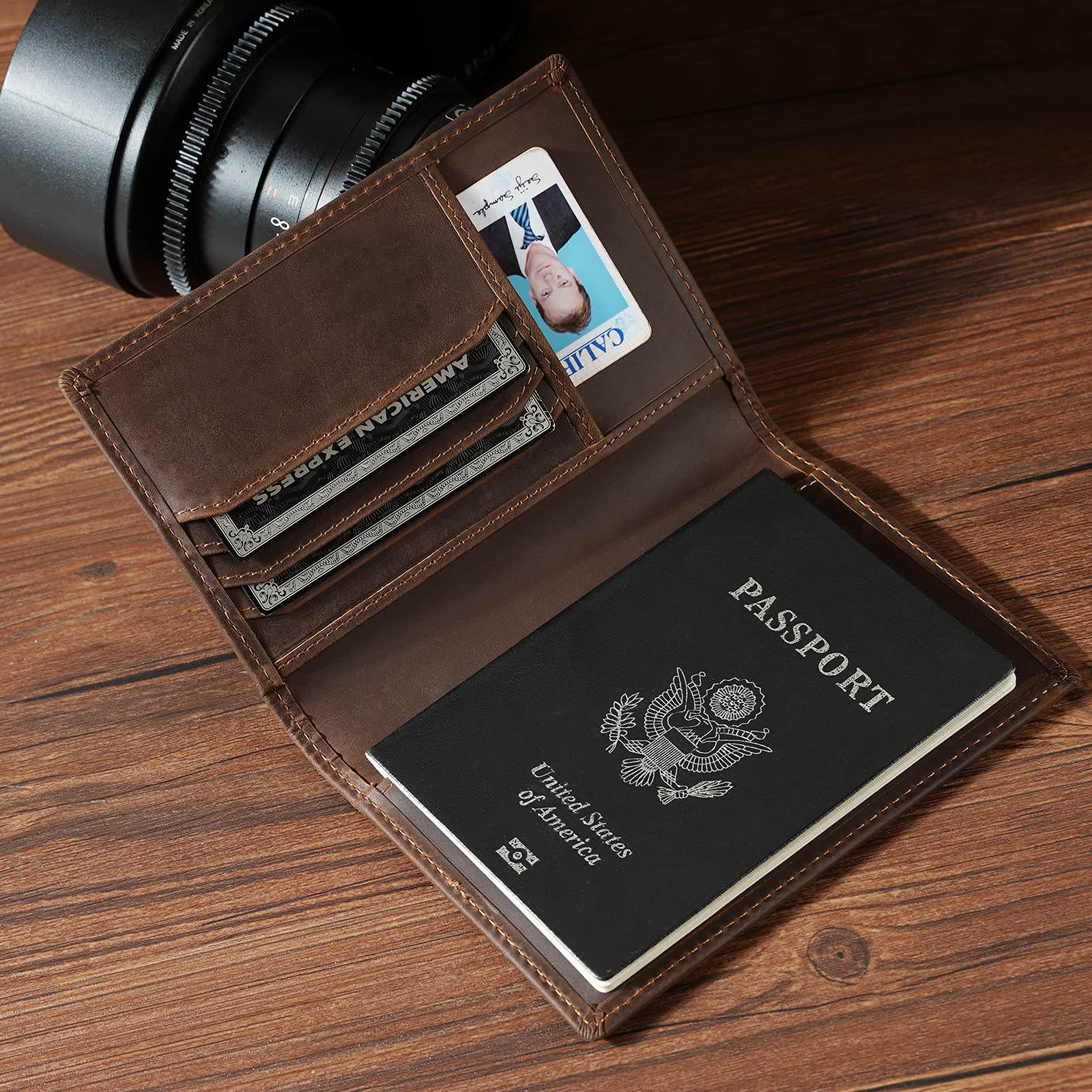 Polare Slim RFID Blocking Leather Passport Holder Travel Bifold Wallet For Men