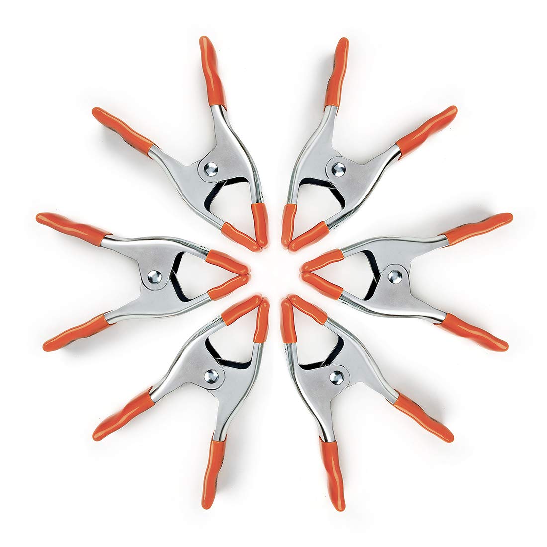 PONY 6-inch Heavy Duty Spring Clamps Set, 2-inch Jaw Opening, Nickel-plated Steel Spring Clips Clamps with Protected Rubber Handles and Tips, 6-Pack