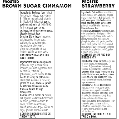 Soft toaster pastries with the flavors of brown sugar cinnamon or frosted strawberry; Both varieties topped with delicious frosting