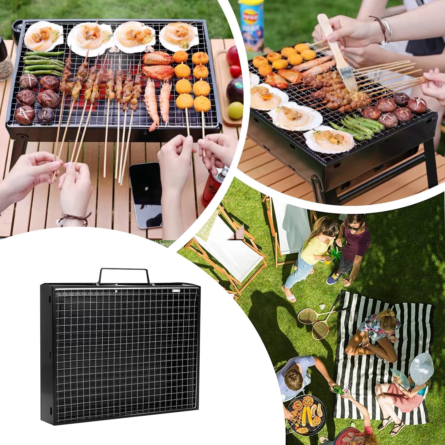 • 【Ideal for Outdoor Grilling】Cookable area: about 17.3 inch x 11.4 inch.You can enjoy burgers, fish, steaks, hot dogs, corn and other vegetables and meats at any time with this portable charcoal grill, perfect for outdoor activities such as camping, picnics, parties and RV trips.