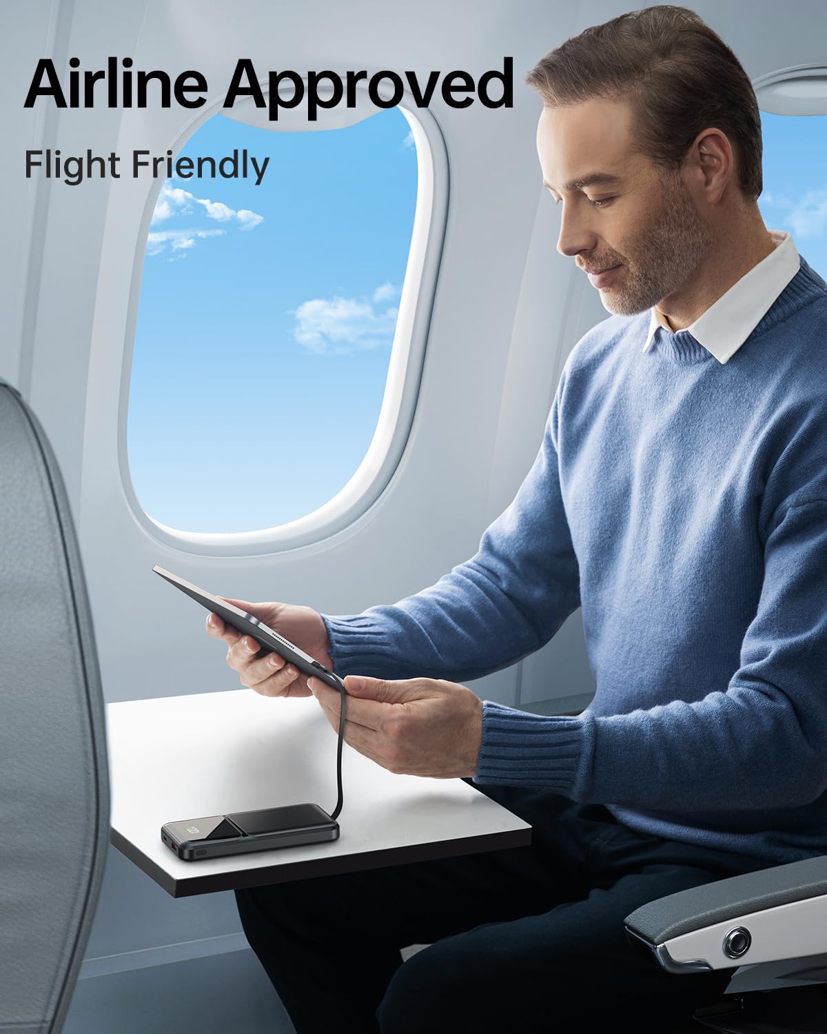 • Travel Essentials Portable Charger with Built in Cables: Slim USB C 20000mAh power bank has 4 built in cables (iOS, Type-C, USB, Micro) and 3 Charging port , Widely compatible with almost all types smart devices such as for iPhone 16/15/15 Plus/15 Pro/15 Pro Max, Samsung S23,S22,S21,S20, Google, Pixel, Android, iPad, Tablet and more. We use high quality materials to ensure the durability, tear resistance, and bend resistance of this power bank with built in cables. (Airline-approved)