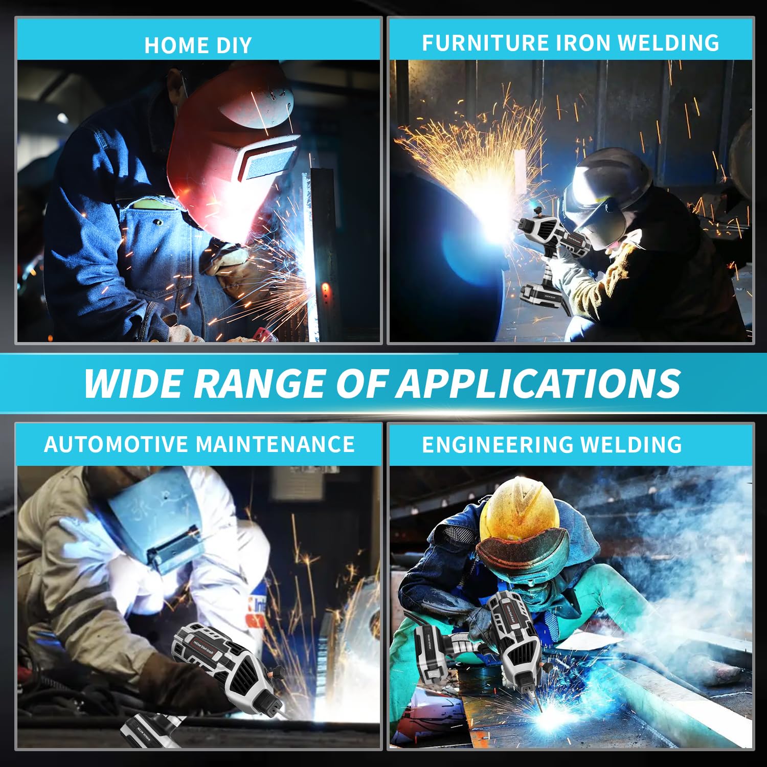 • Safe & Stable To Use: This portable welder handheld with Over-heating protection,over-current protection,over -loading protection.Can be welded normally at -25°.Powerful air intake and heat dissipation intelligent system,a good heat dissipation system can keep the hand held welder machine working for a long life.The handheld ARC welding machine built-in 360° Cooling Technology and specific overheat protection,effectively protect the internal circuit of the welder gun from damage and ensure safe and stable use.