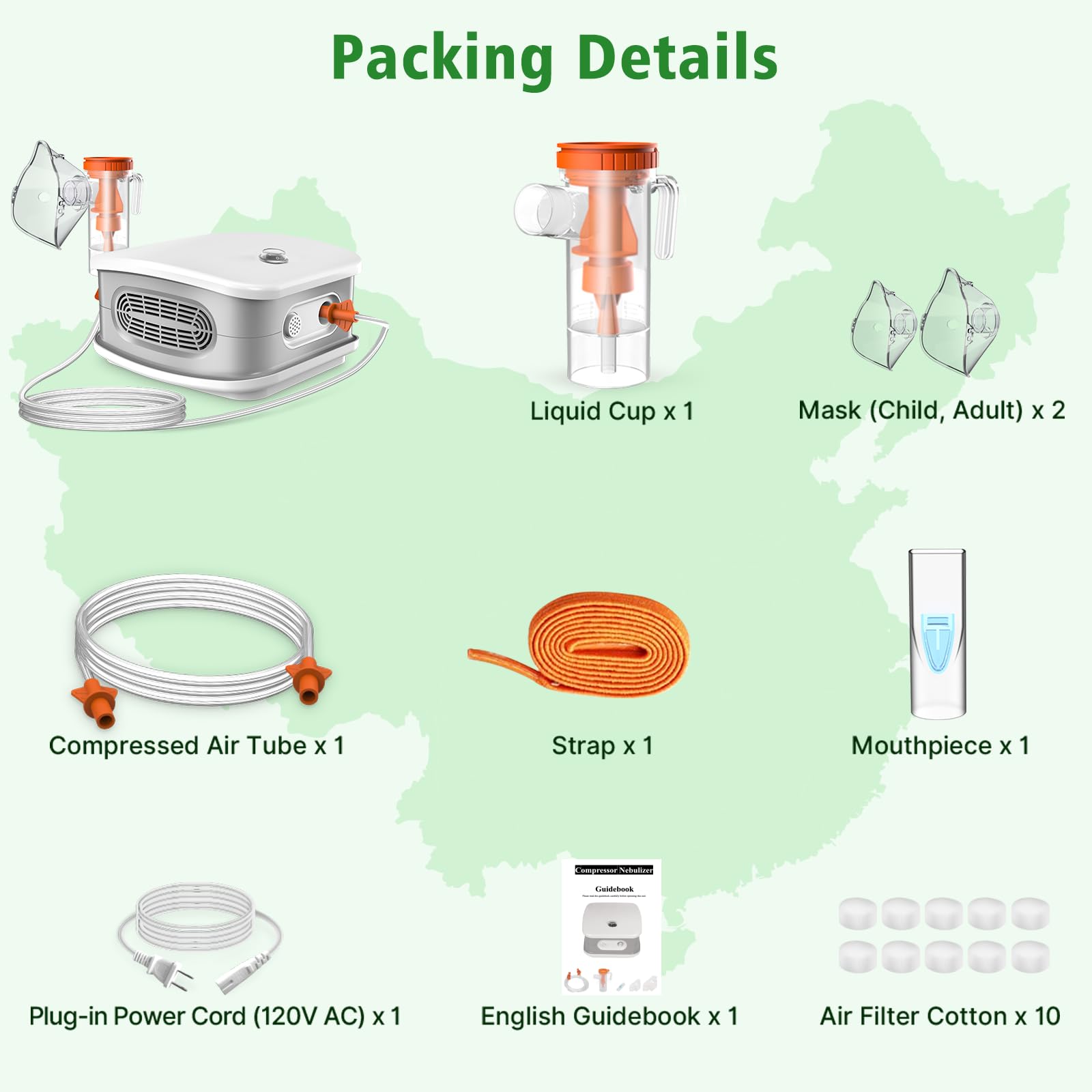 • COMPREHENSIVE ACCESSORIES - Your purchase includes everything you need: 1 nebulizer, 1 valve cap, 1 air tube, 1 mouthpiece, 1 adult mask, 1 child mask, 8 filters, 1 T-connector, 1 valve, 1 nozzle attachments, and 1 instruction manual