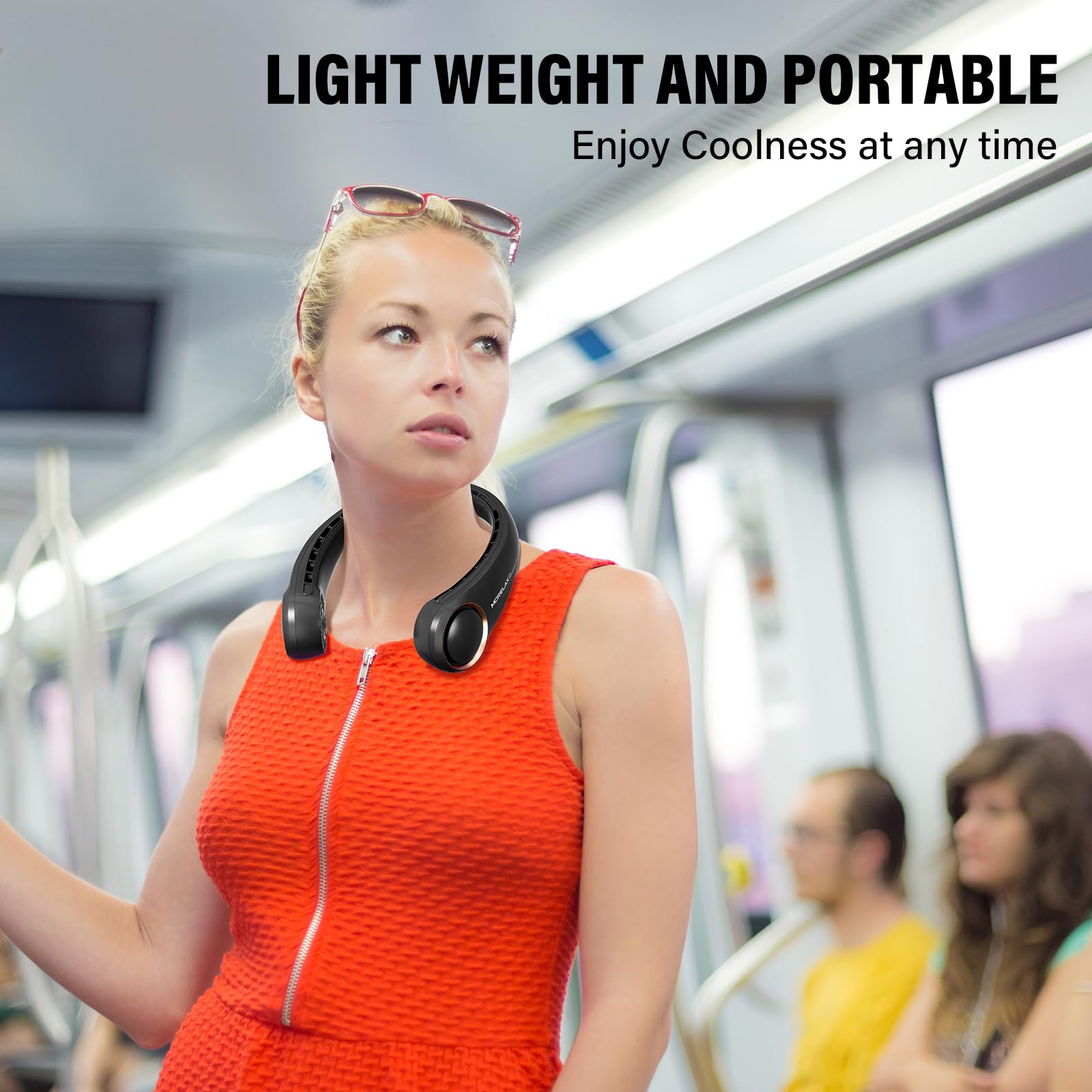 • [Low Noise & Comfortable] Personal neck fan after upgrading the brushless silent motor has lower noise and quieter during operation. This cooling fan is made of soft and comfortable material, ergonomically designed, light and comfortable and skin-friendly. Wearing leafless hanging neck fan can also work and study with peace of mind and enjoy the natural wind.