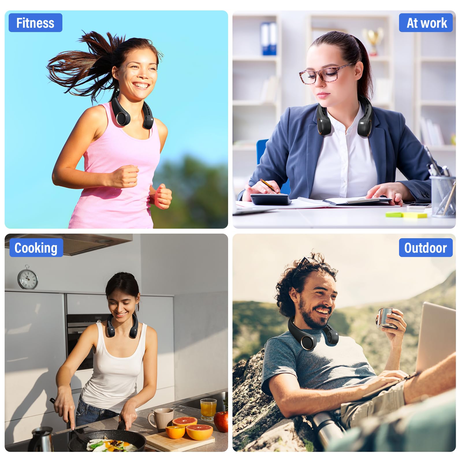 • [360°SURROUNDING AIR MOVEMENT ] Upgraded Bladeless neck fan, which will not pinch hair or cut your fingers, ensuring safe use for long hair people, children and the elderly. Upgraded air outlet design, 360° surrounding air outlet, and a new generation of turbine blades are quickly cooled in 3 seconds. Let you feel more gentle cool breeze.