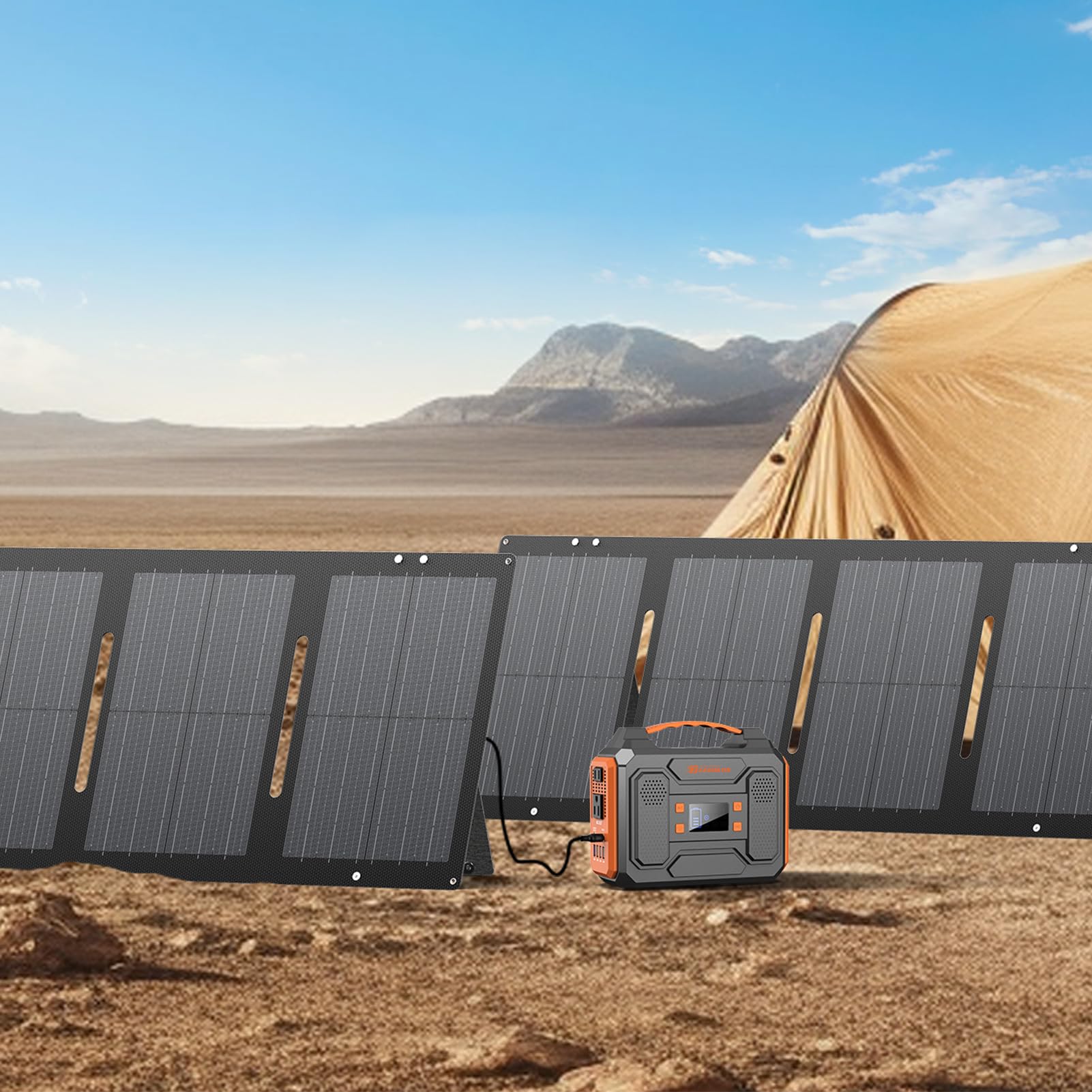 🌍WATERPROOF PANEL SURFACE: The material of the panel is made from high quality polyester fabric with IP65 waterproof technology, which protects our solar power charger from getting wet and extend its lifespan. NOTE: The connector box is NOT waterproof, please do not put this portable solar panel kit outside all day long